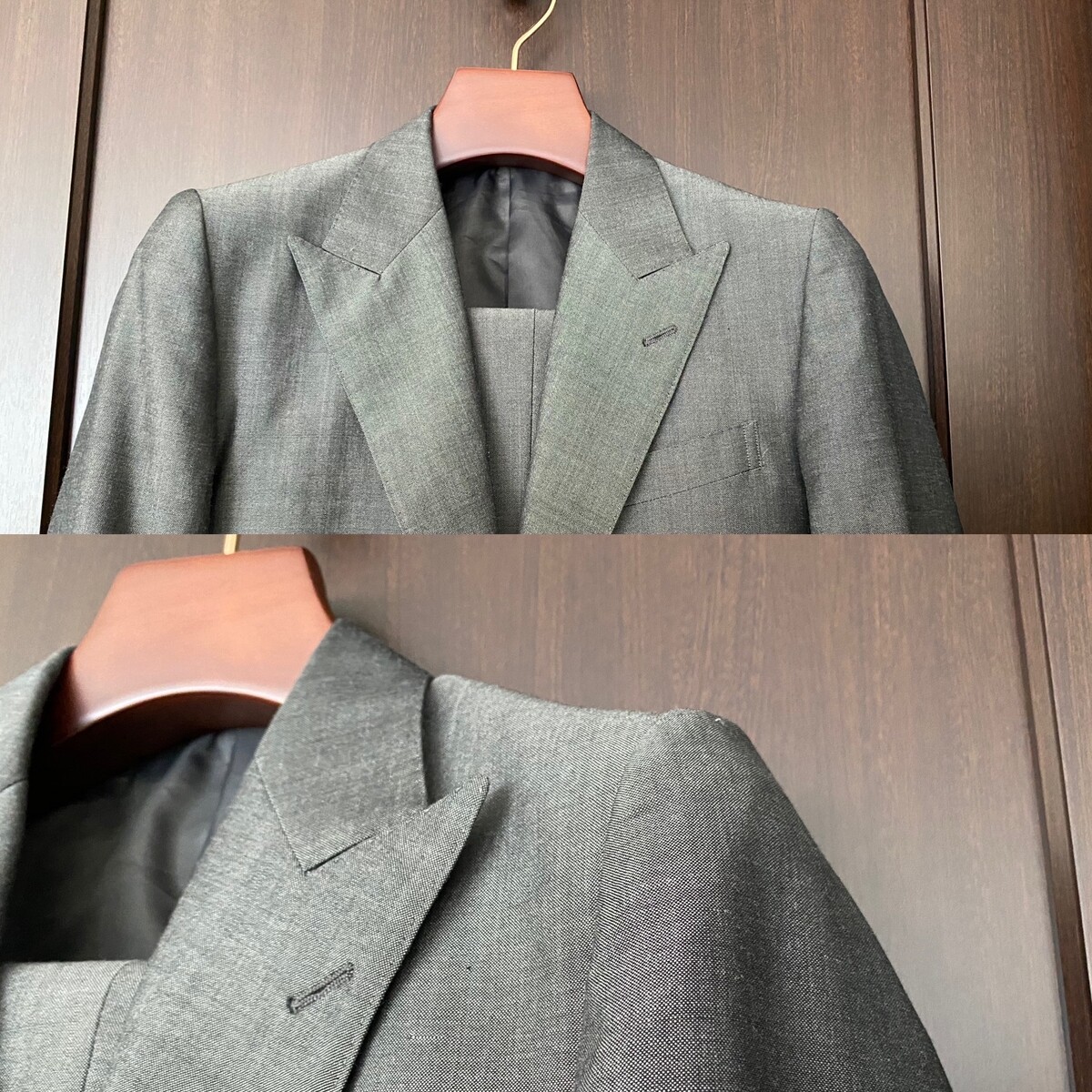 肩から腕への掛けてる時のシワが違い、スーツがキレイに見える。