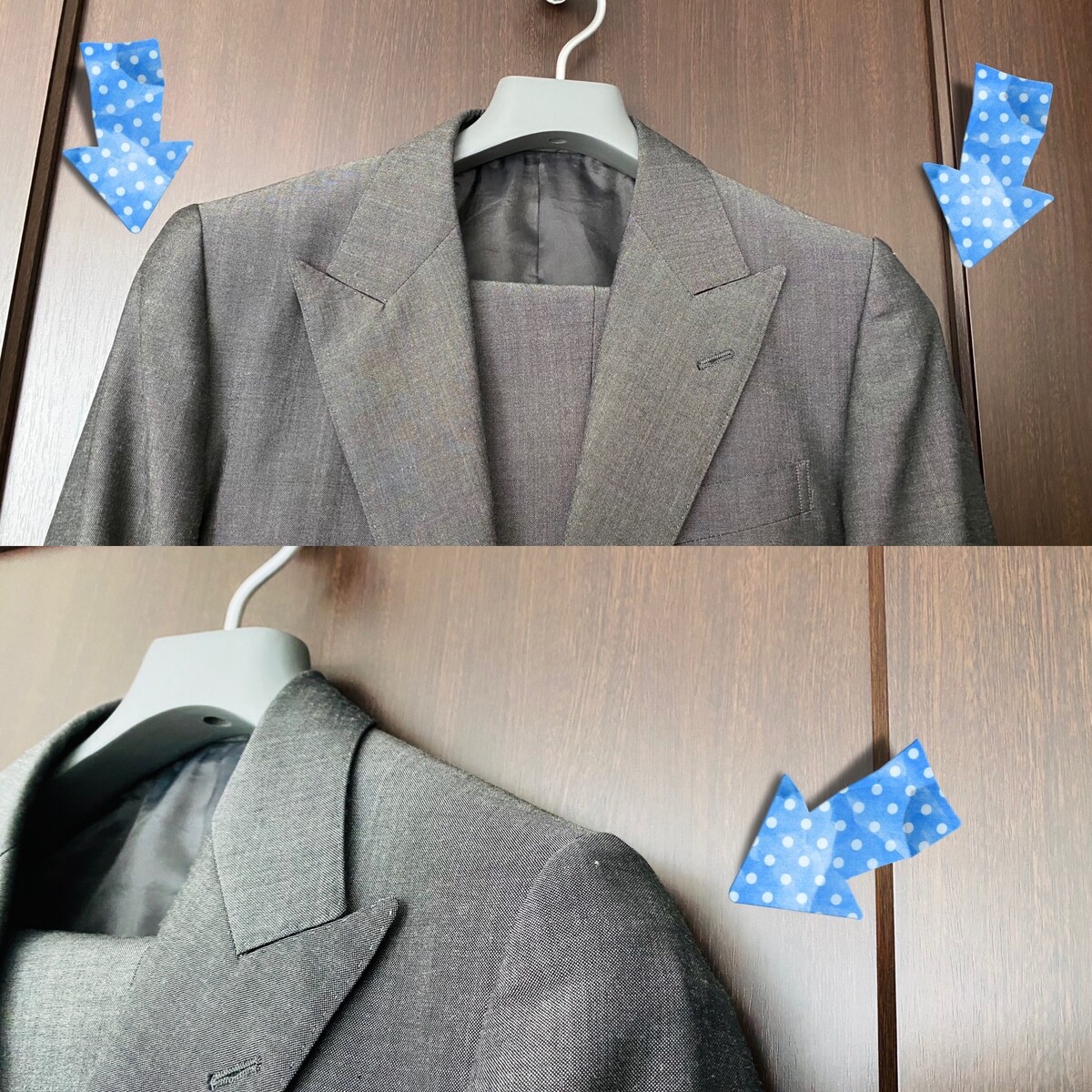腕の所にハンガーが突き出ており、こちらも変なシワの原因でした。