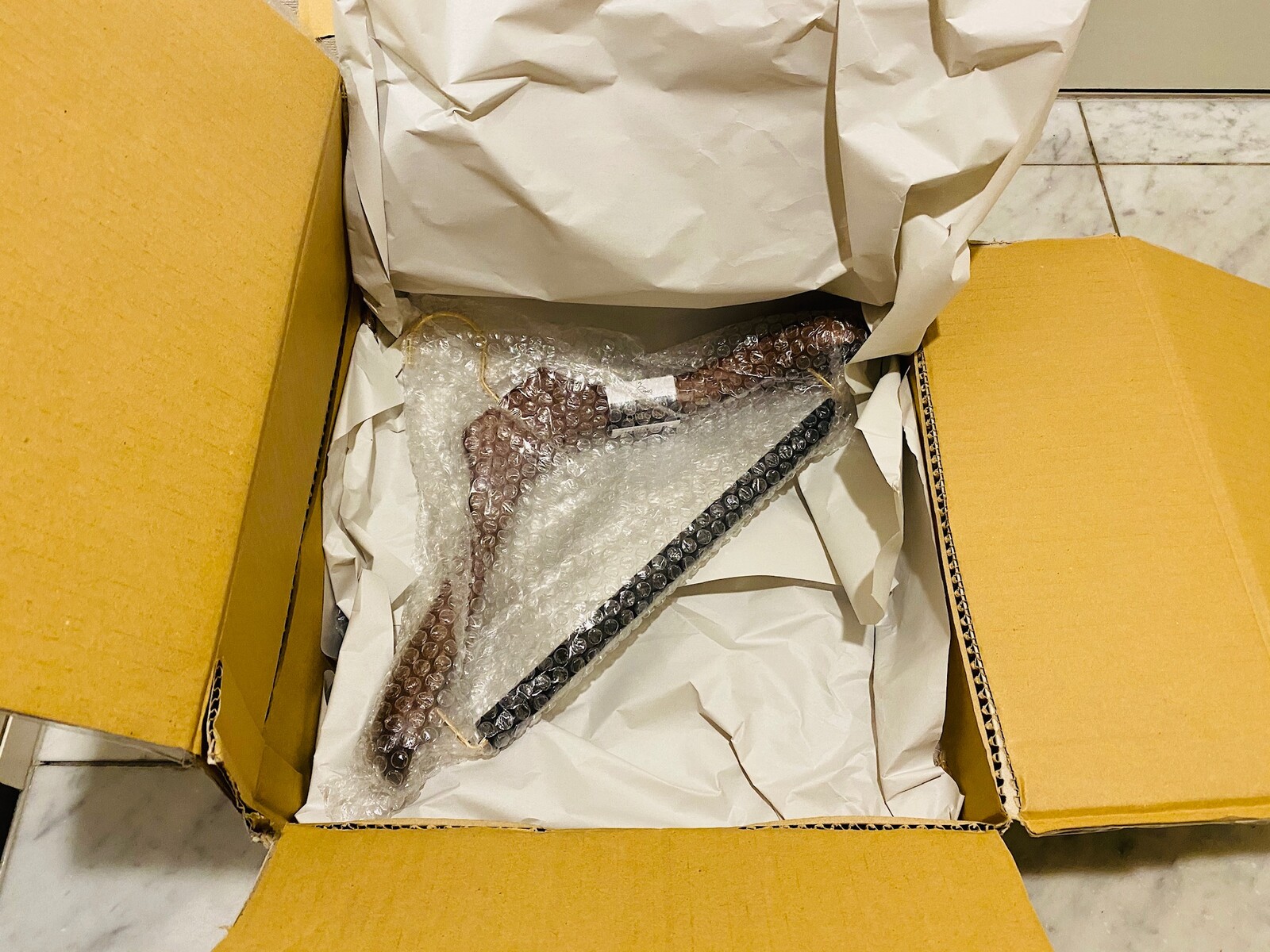 次のハンガーを探していた所、素敵なスーツ用ハンガーをお試しさせて頂けることになり