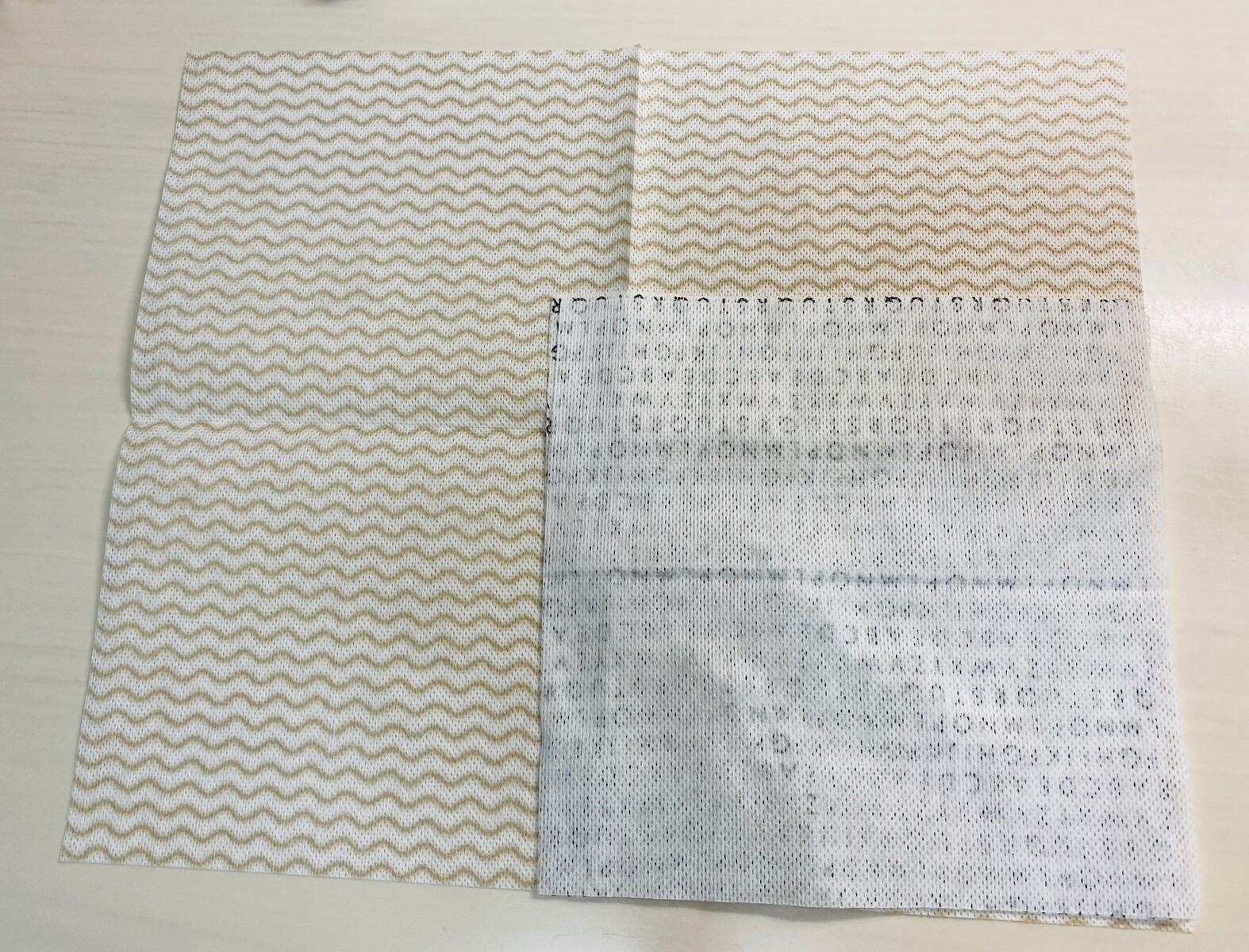 セリアのキッチンダスター2種は、ニトリのカウンタークロスが透けて見えているくらいに薄いです。