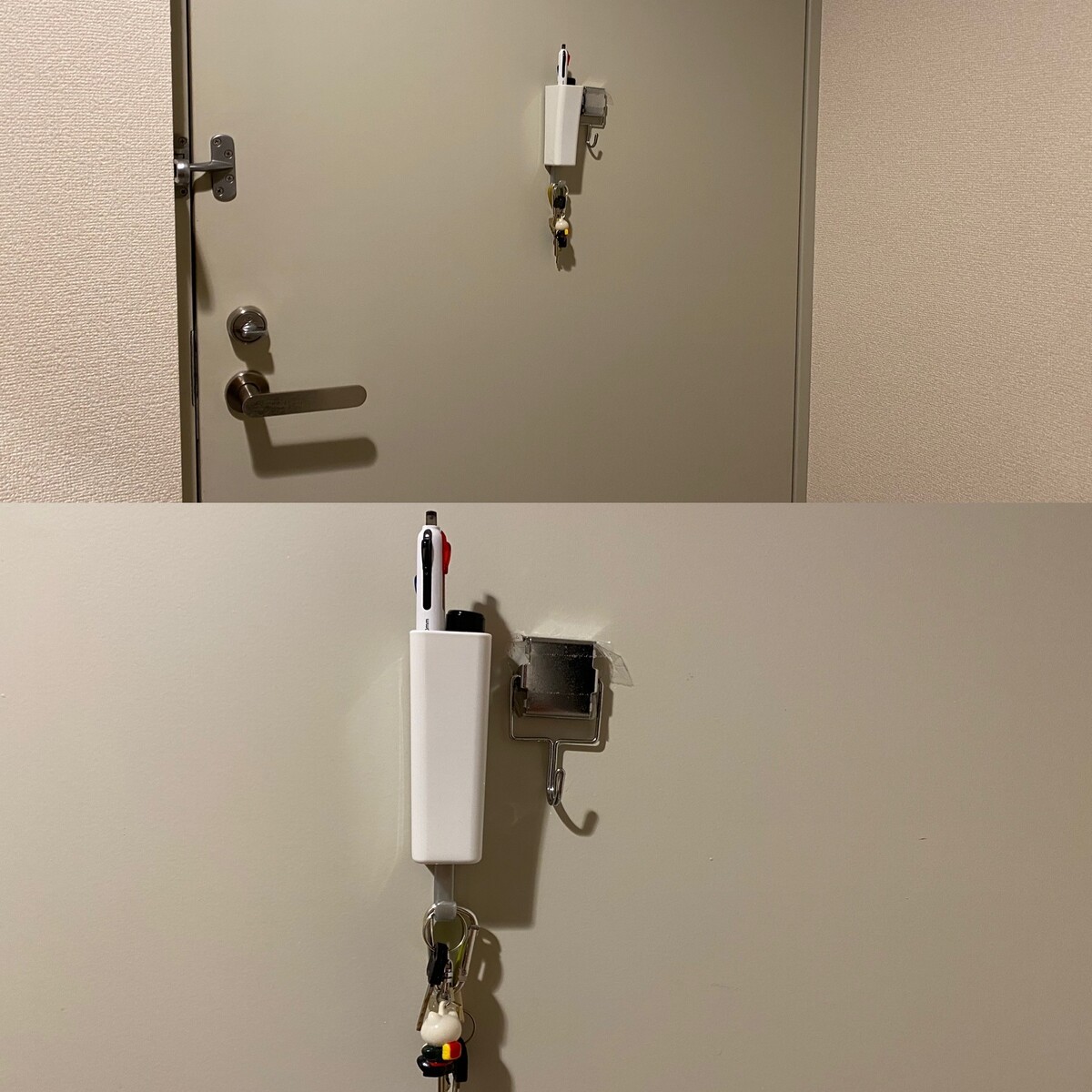 マグネットが使えるので、自転車のカギや、シャチハタ・ペンを