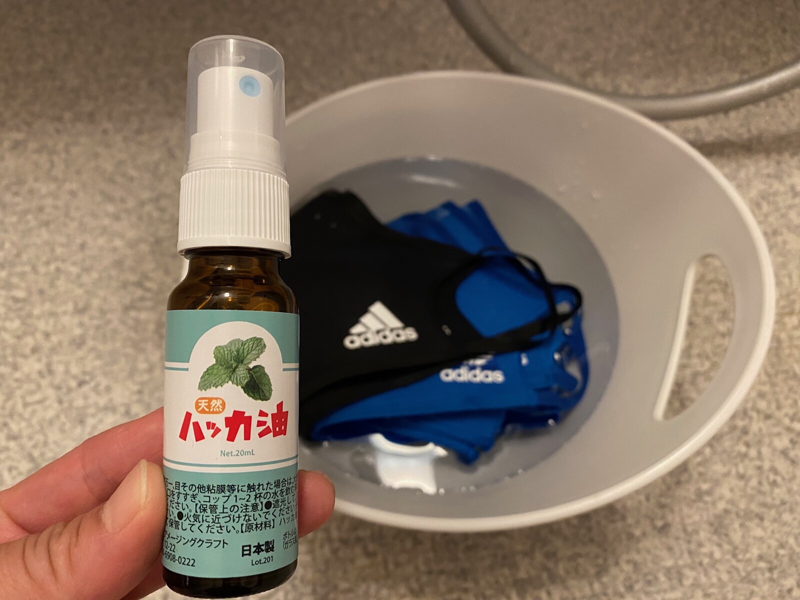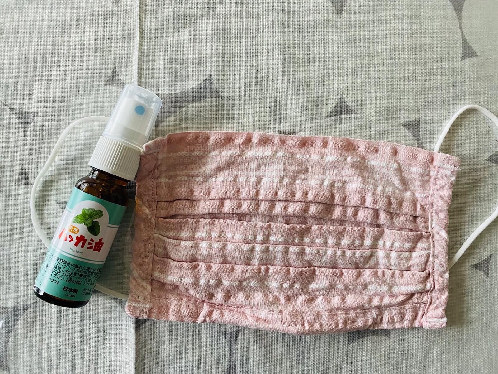 マスクを洗う時にハッカ油をスプレー。