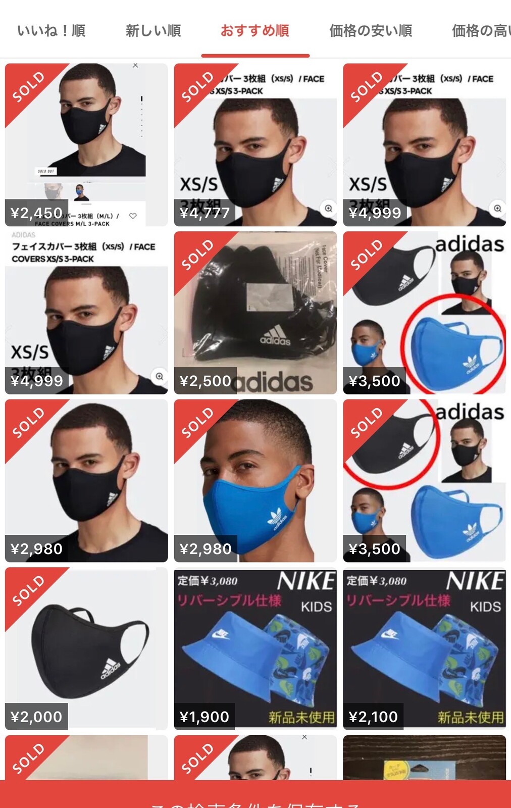 アディダスのマウスカバーが倍以上の高値で出品されてる!!