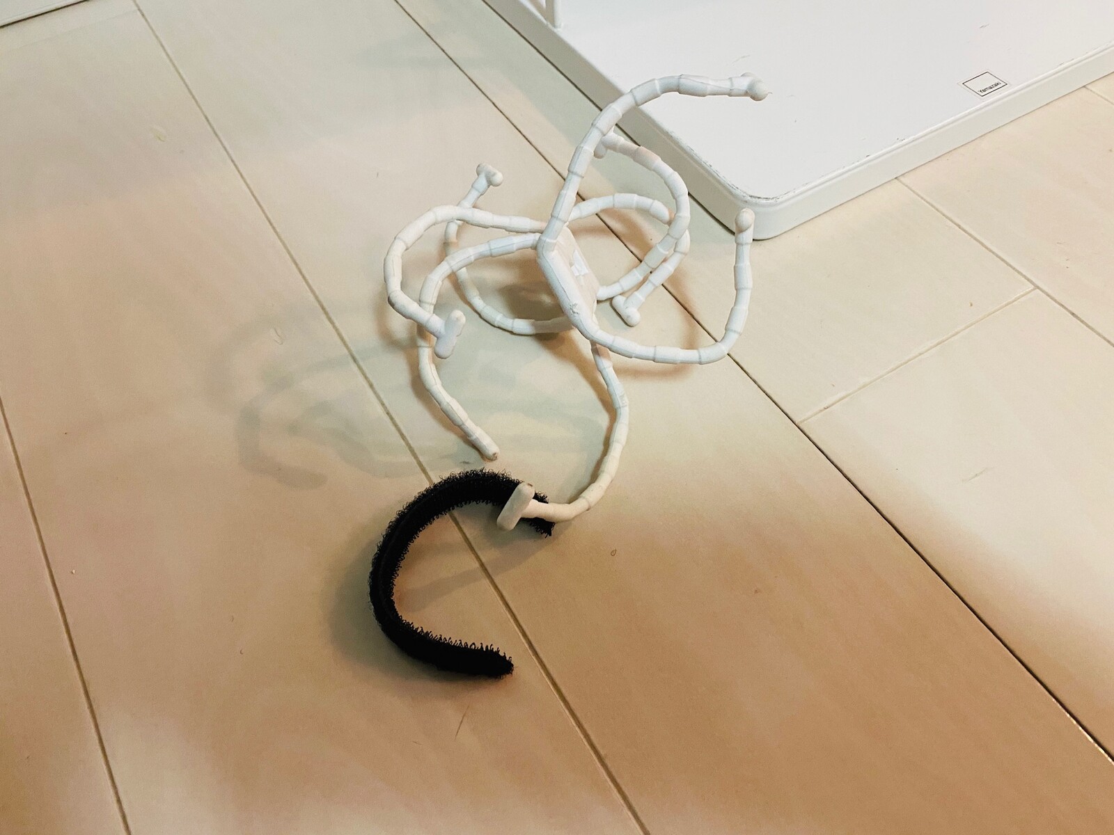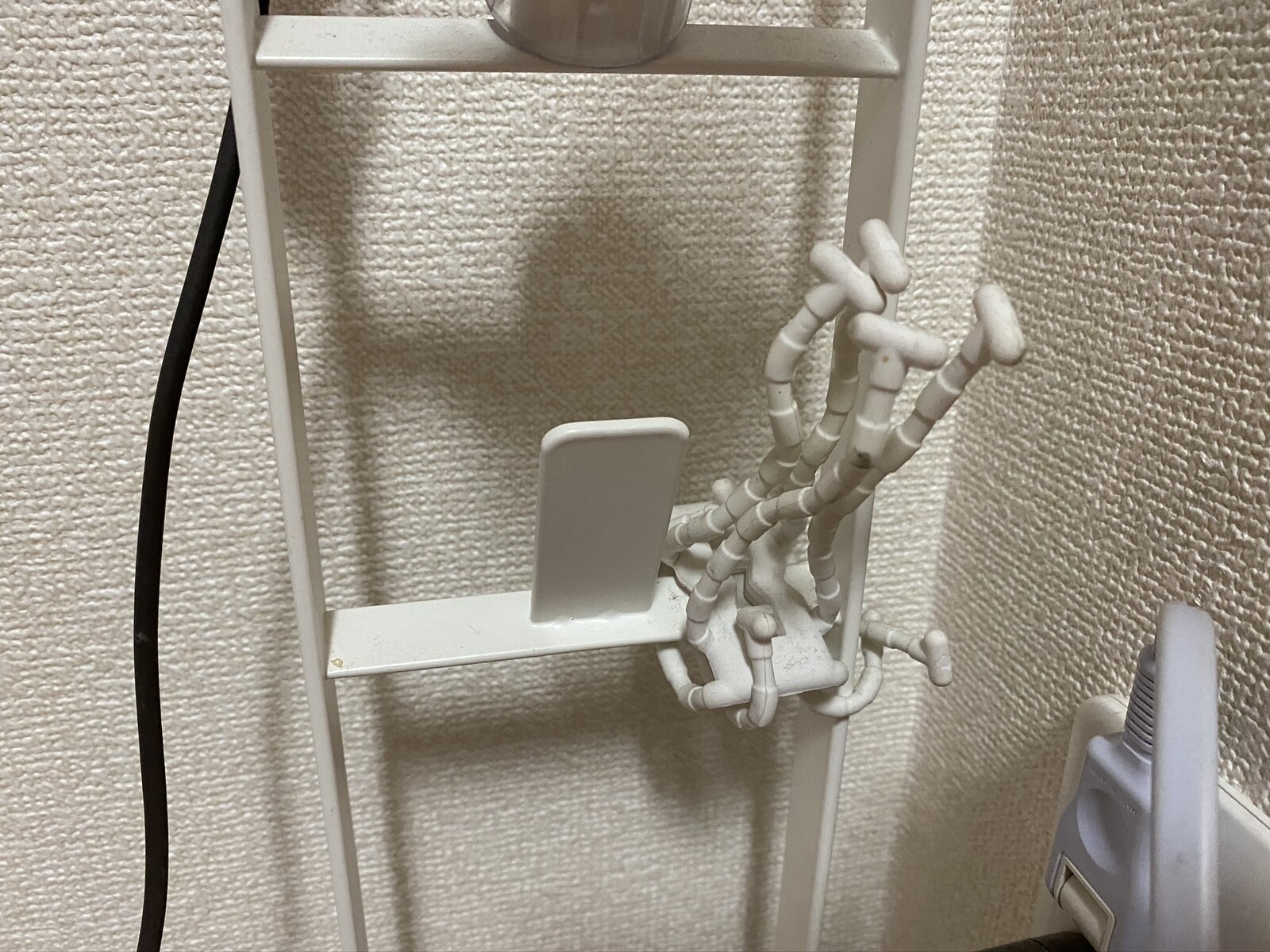 100均のスマホやデジカメを固定出来るくねくねホルダーを使って収納していました。