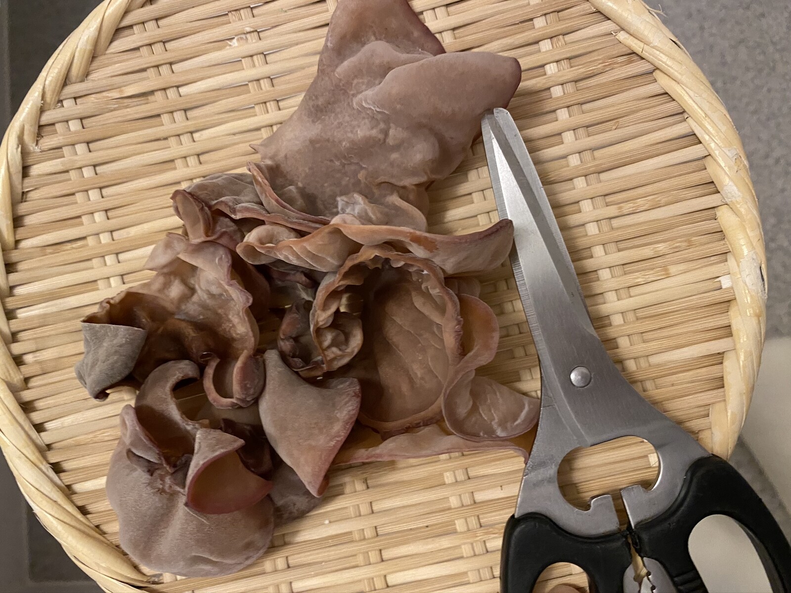 外側が少しカリカリと乾燥キクラゲになってきました。