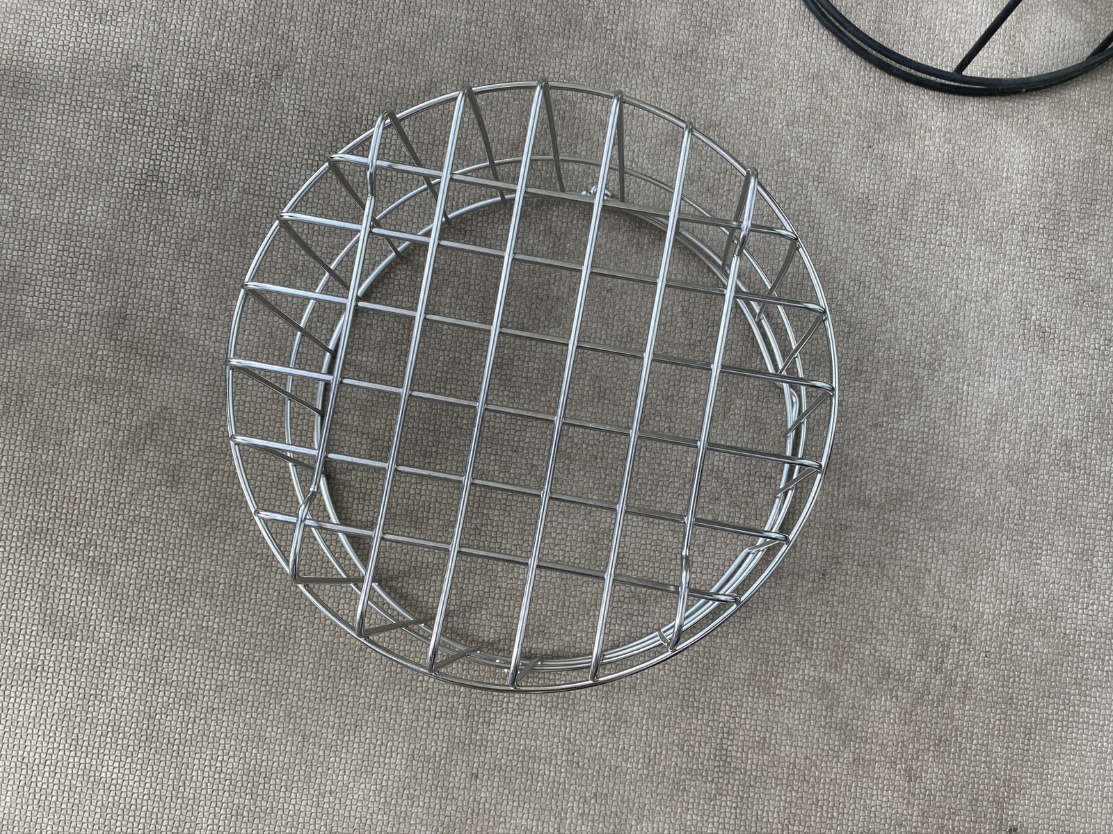 ベランダに、無印の洗濯かごを逆さまに置いて