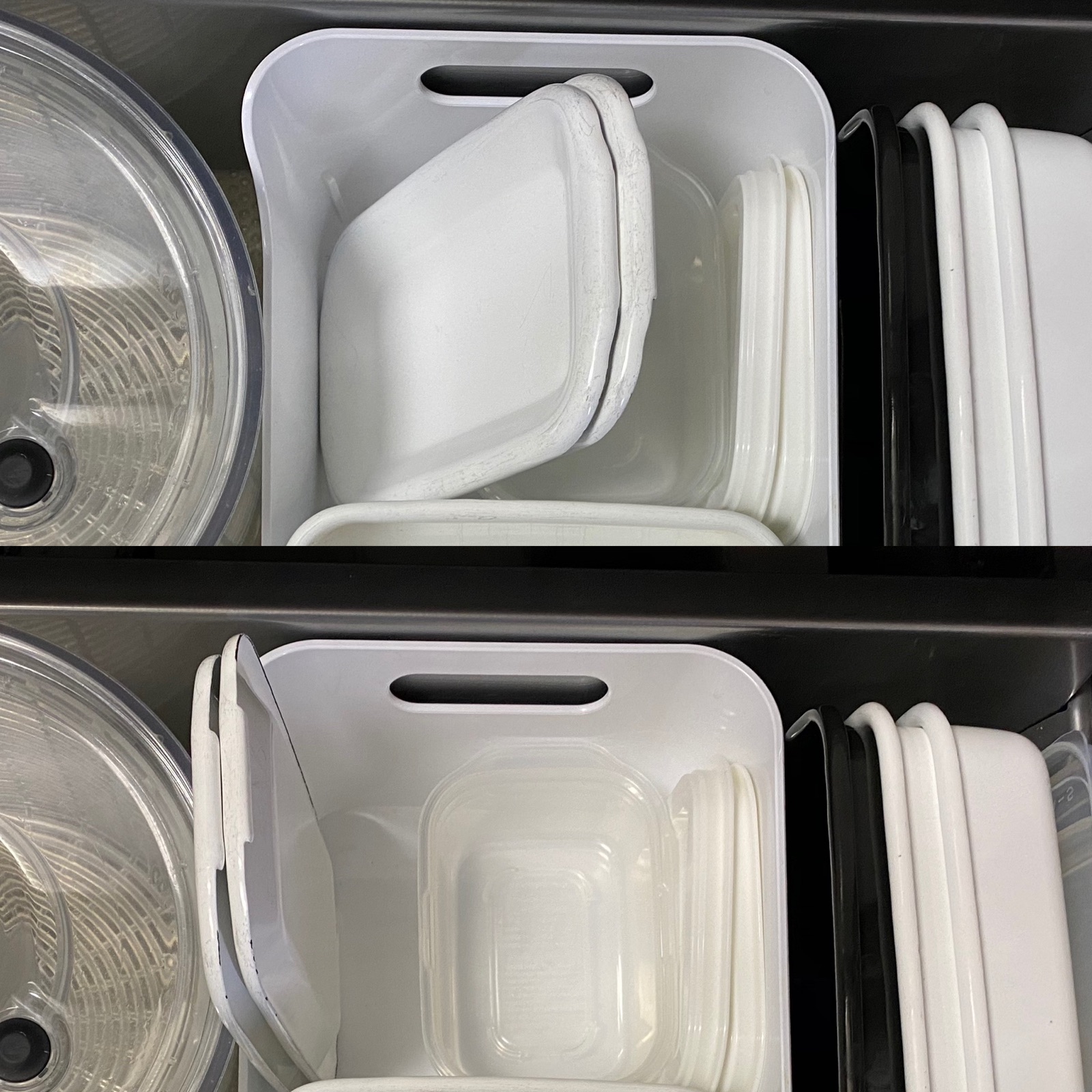 中には、野田琺瑯の琺瑯容器と蓋をわけて収納しているのですが