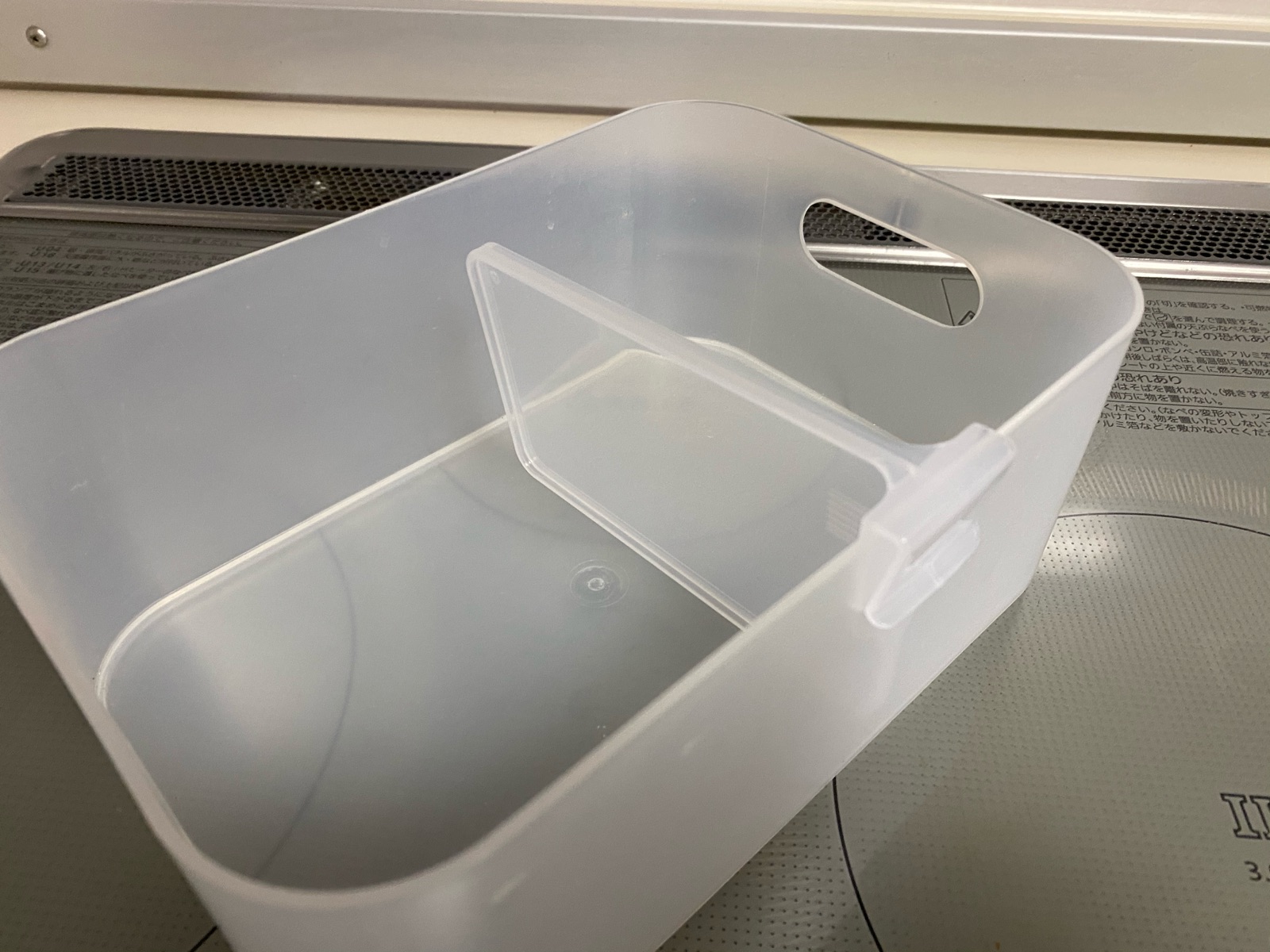 プラの容器を取り出す時に、琺瑯の蓋を動かすのが