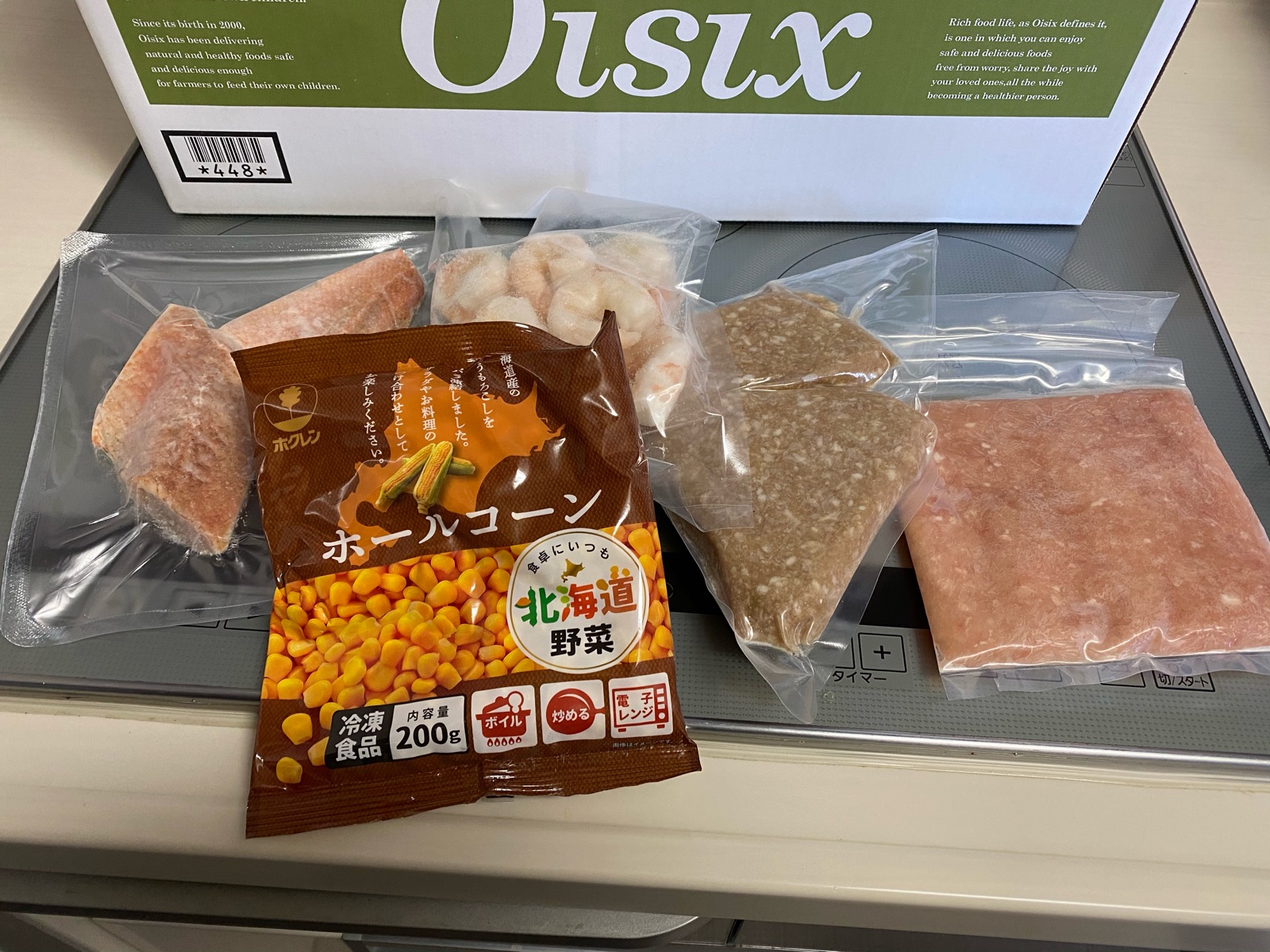 冷凍の箱からは、魚やミンチのお肉など
