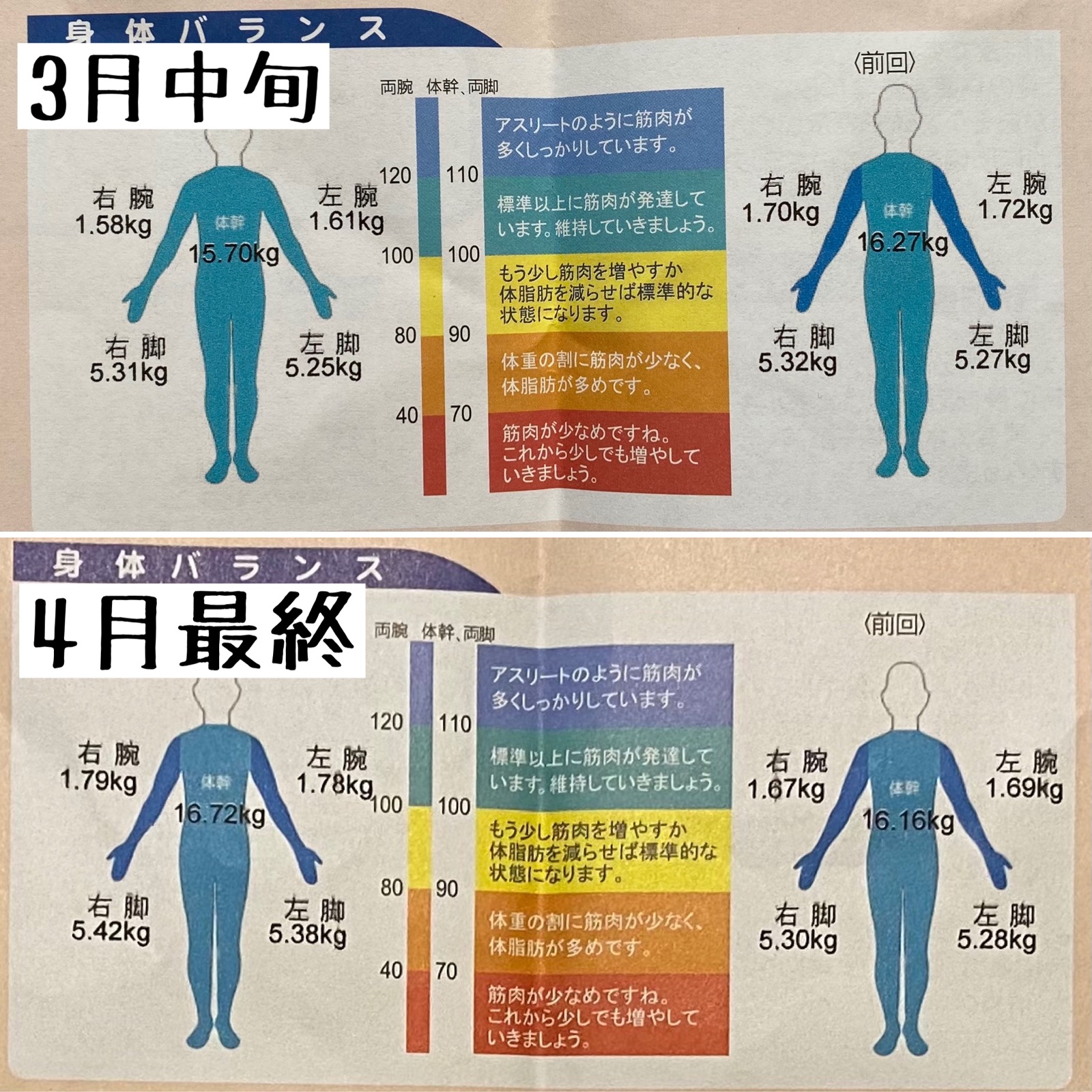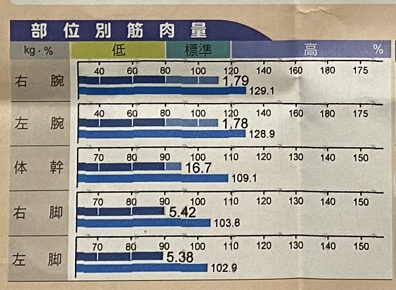 4月1日から比べると全ての筋肉量が増えました。