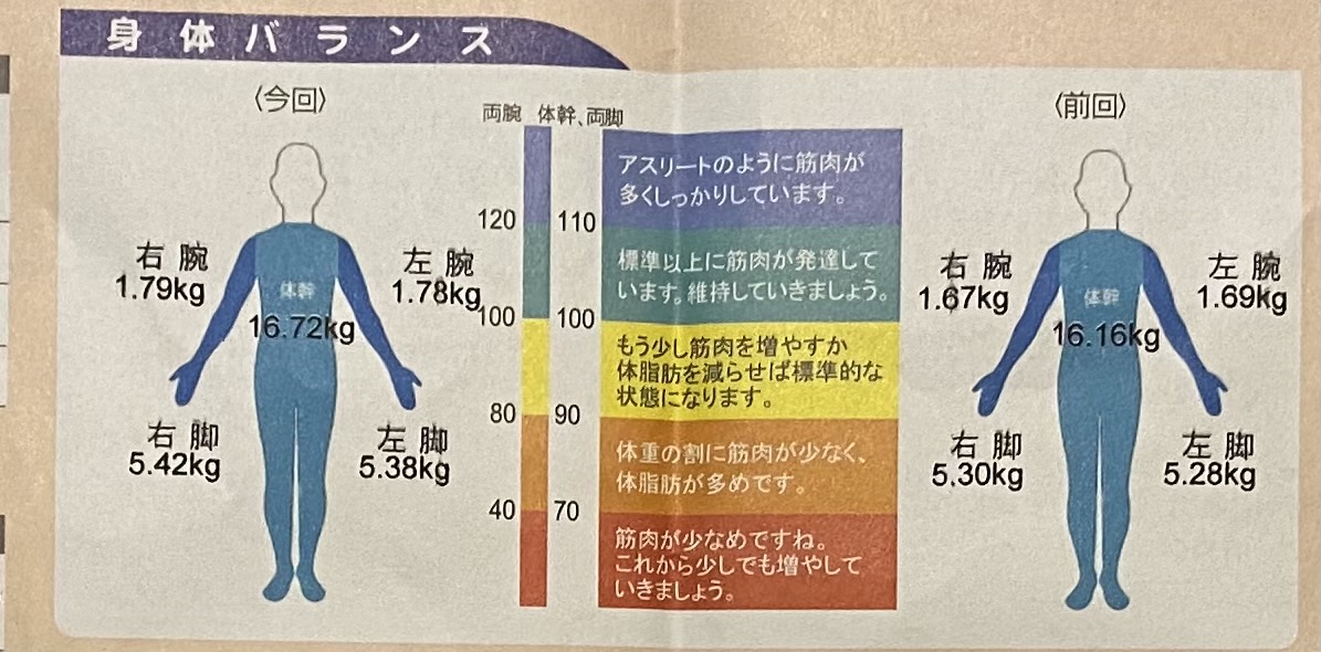 体幹はあと0.9%筋肉量が増えると濃いブルー♪