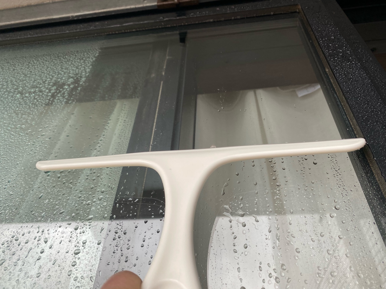 ベランダ側は土埃が少なかったのでスクイージーで水切りして