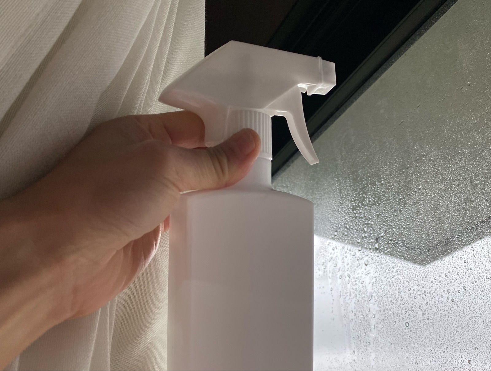 水を入れて窓の外側にスプレーして、しばらく放置。