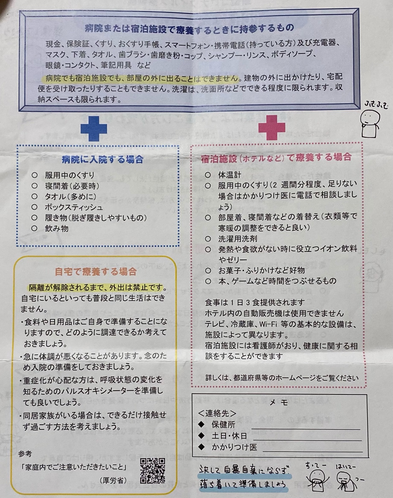 主人がPCR検査をした時点で「もし、陽性なら入院してもらう事になると思います」と