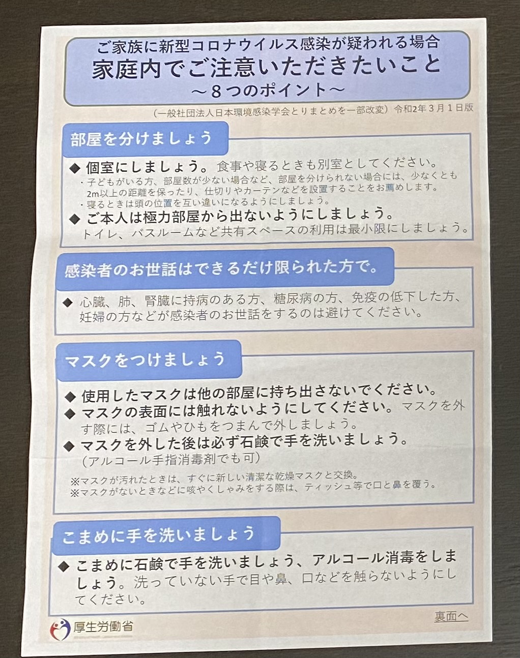 同居家族がいる場合は家庭内感染を防ぐのも大事!!