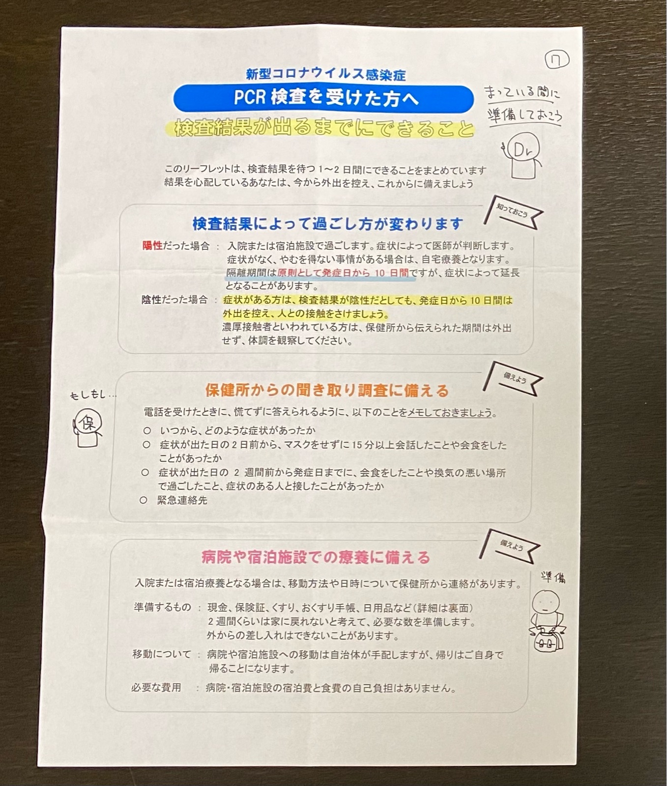 朝一の検査が空いていて、私がPCR検査を受けた時に貰って帰ったもの。