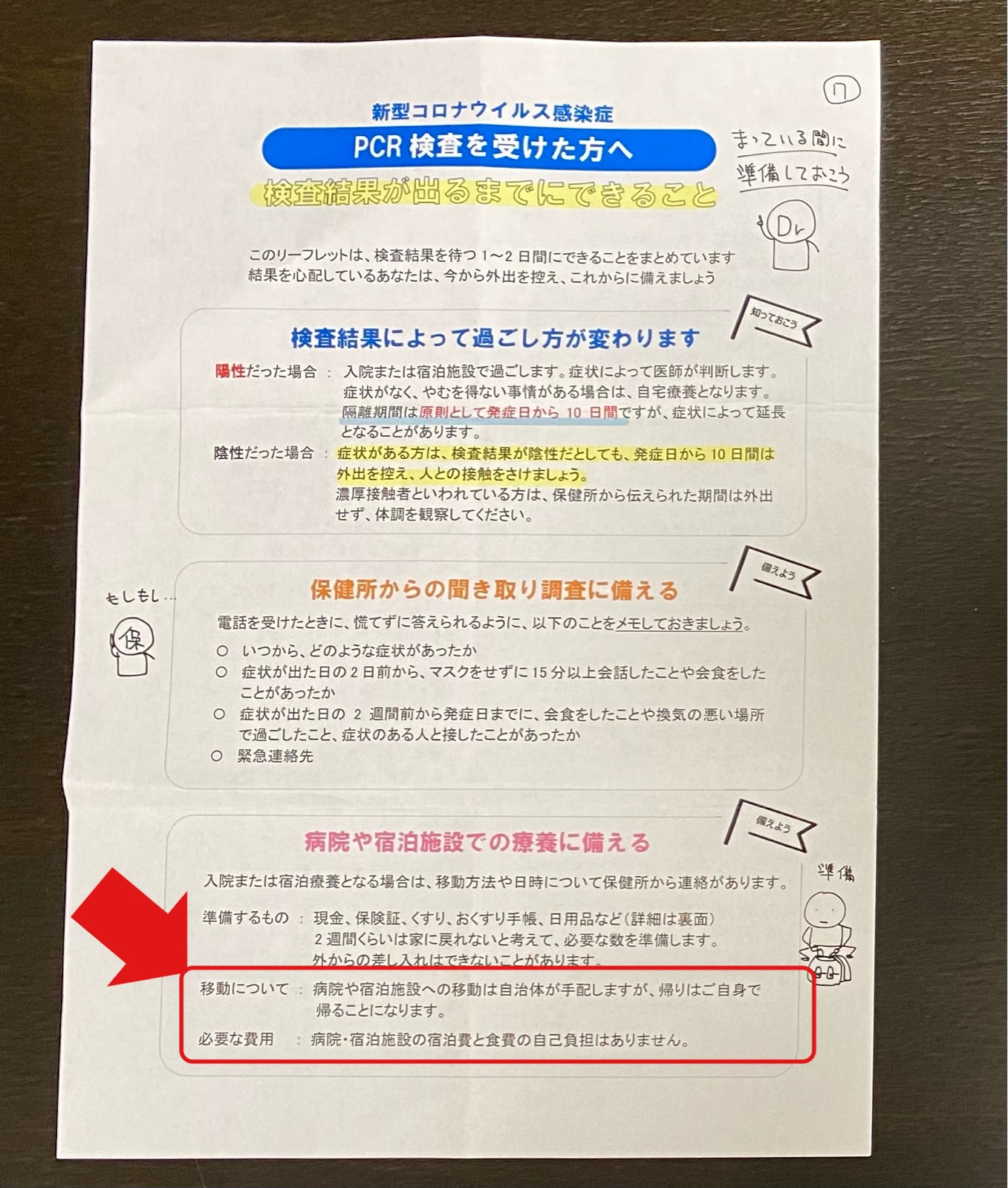 PCR検査で陽性と検査結果が出た当日に入院となった主人。
