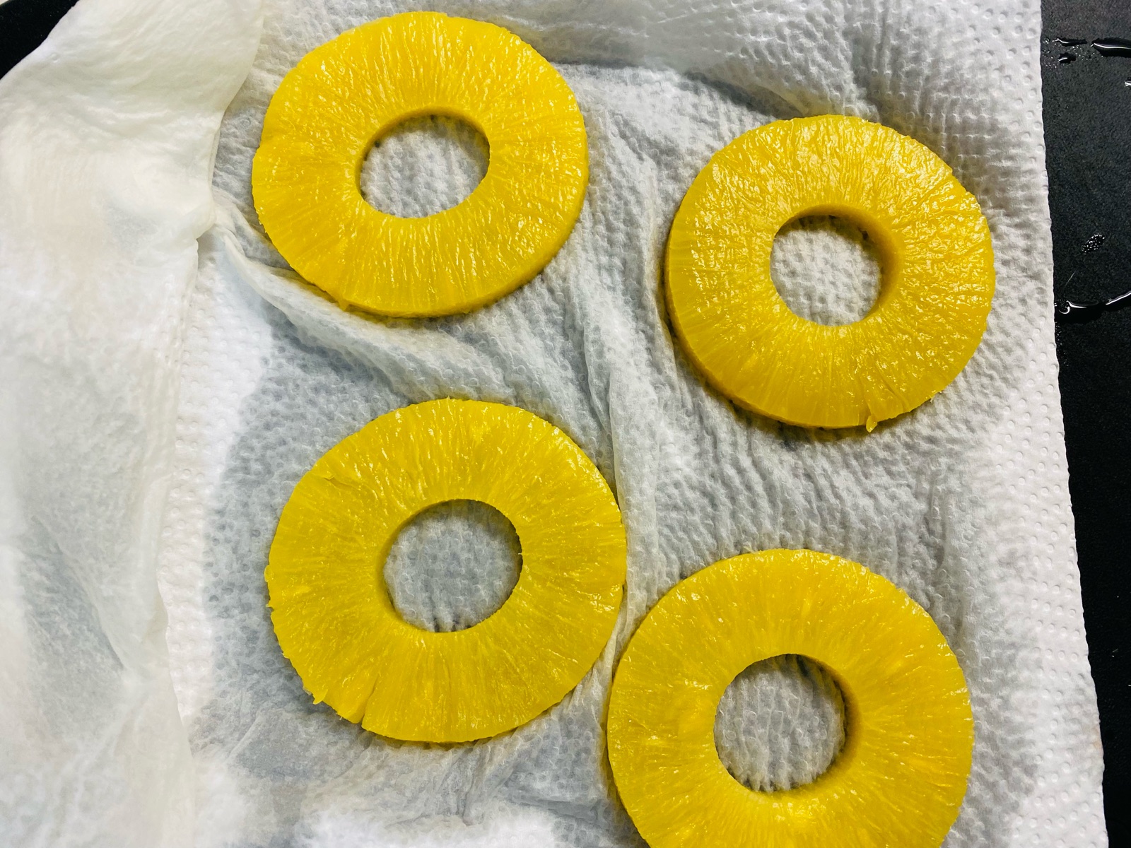 ポイナップルは先に水分をしっかりとキッチンペーパーで取り