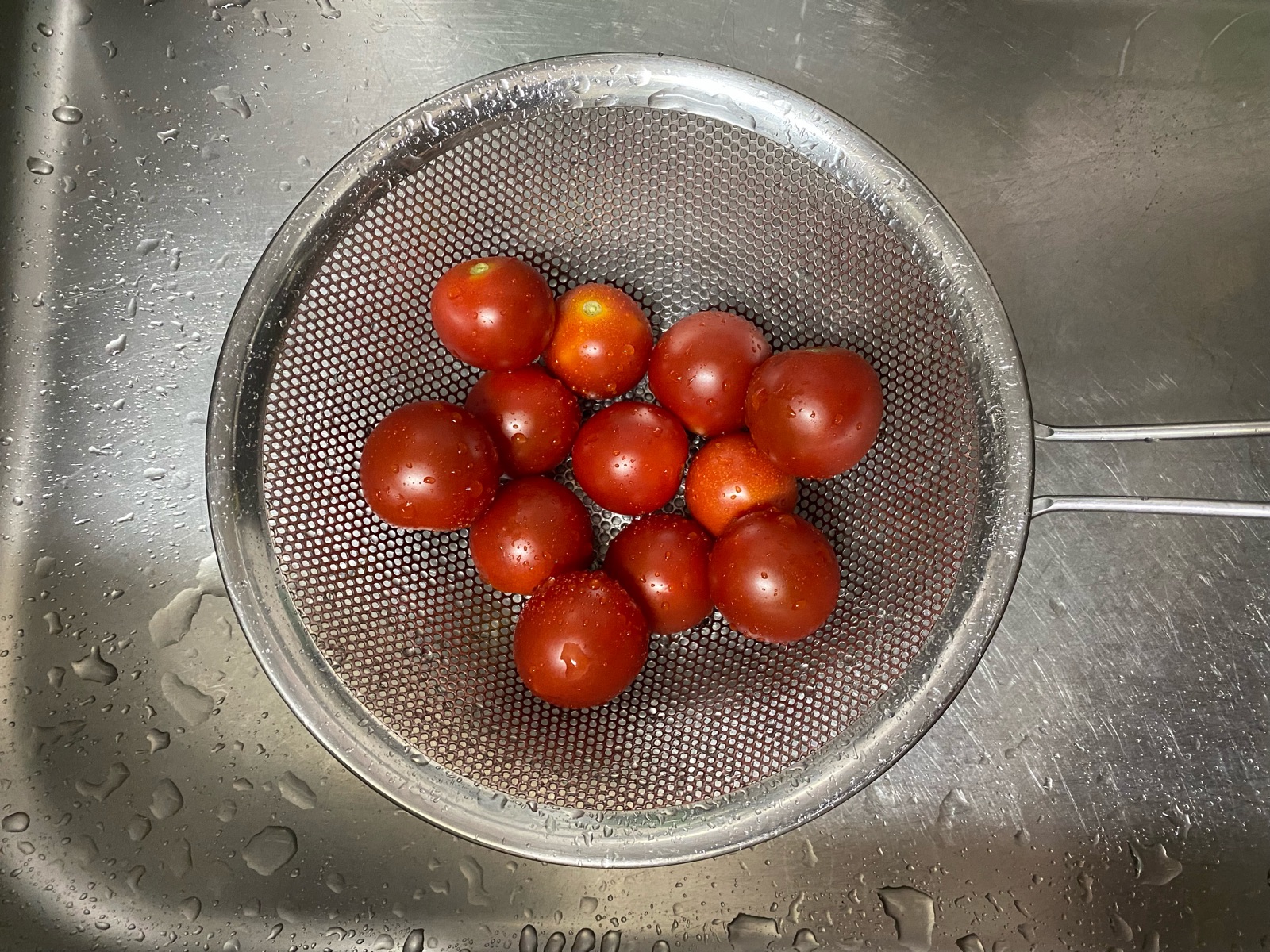 プチとは言えない、大き目のミニトマトを洗って