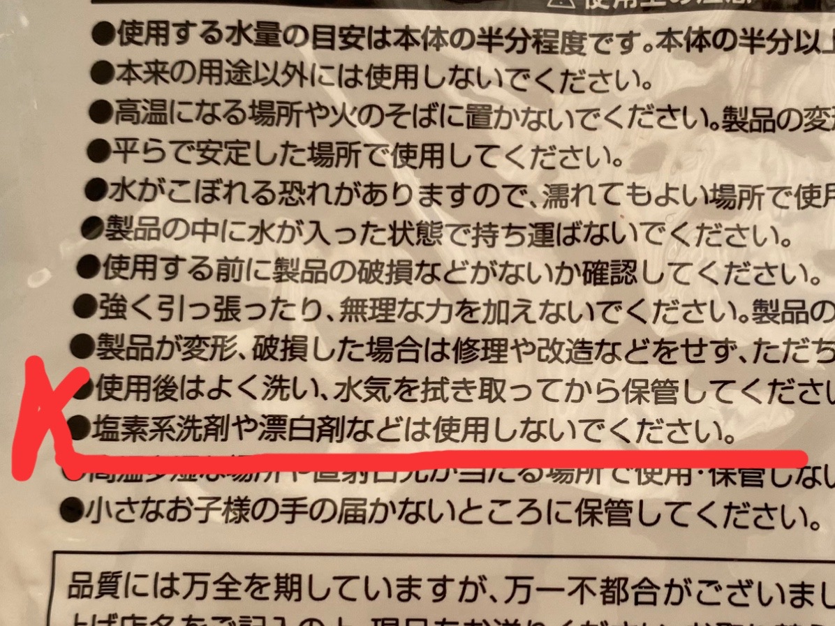 塩素系漂白剤だけじゃなく、漂白剤などは使用しないでください。