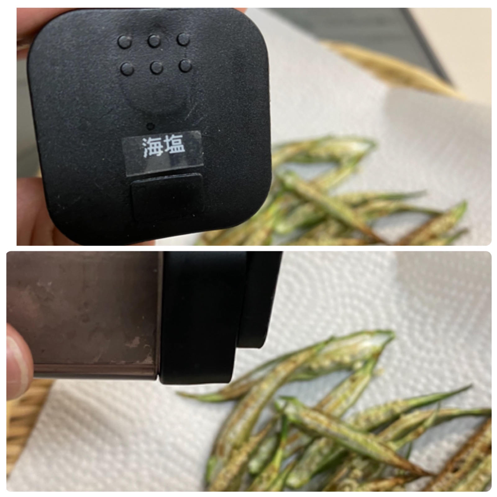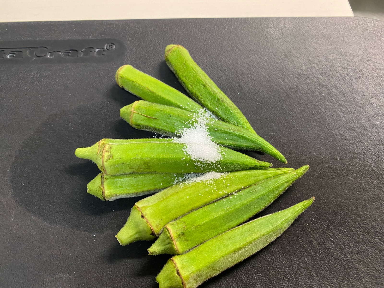 オクラに塩で板ずりし