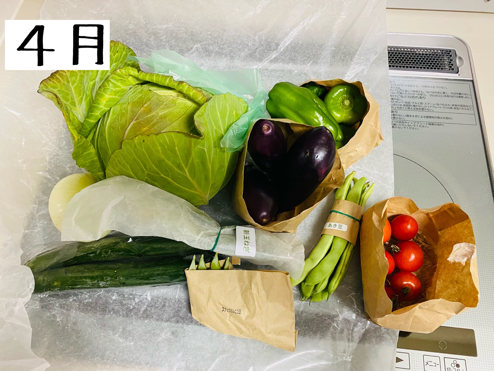 4月は新玉ねぎやあき豆。