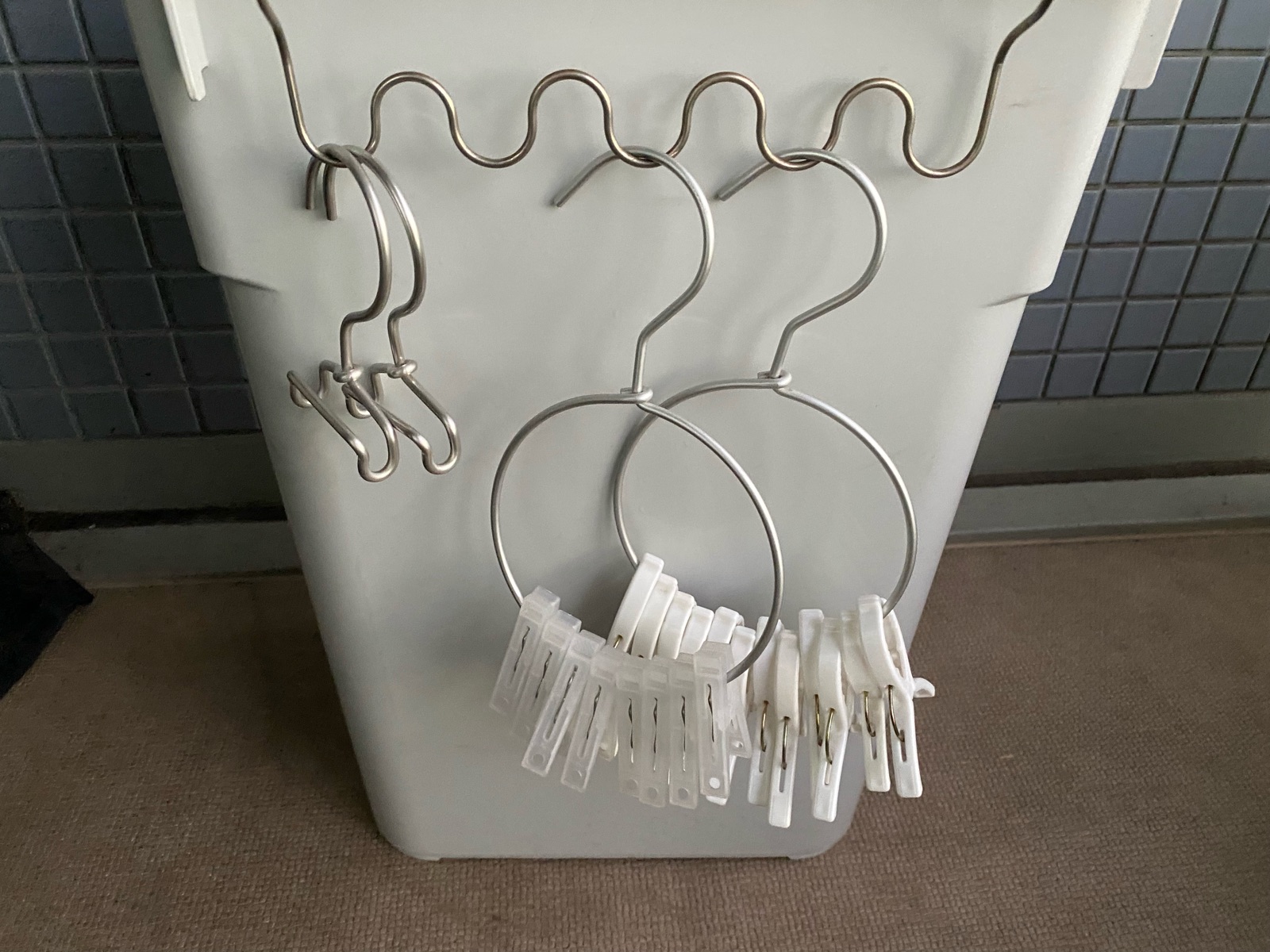 洗濯干し小物収納にゴミ箱おススメです。