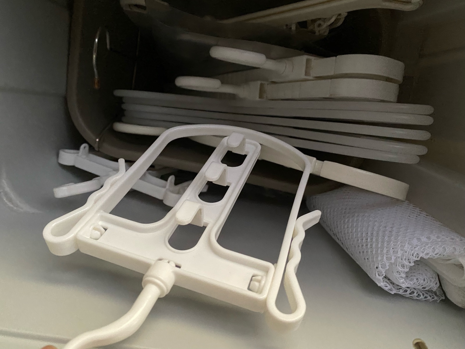 風が強い日や雨の時は、横に掛けていた洗濯バサミなど全て中へ入れて