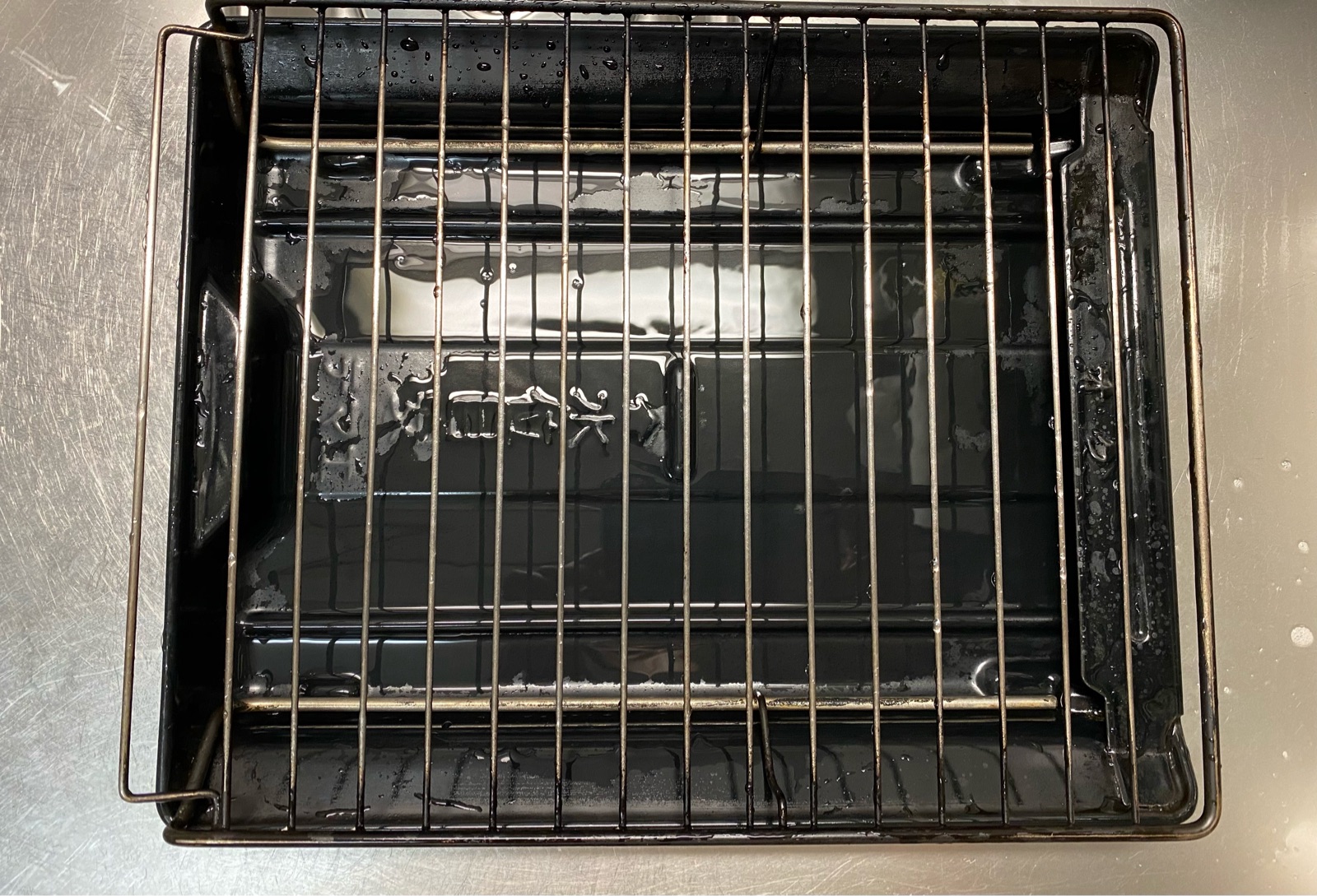 水でしっかりとすすぎ、油が浮いていた魚焼きグリルは台所洗剤で簡単に洗っただけで
