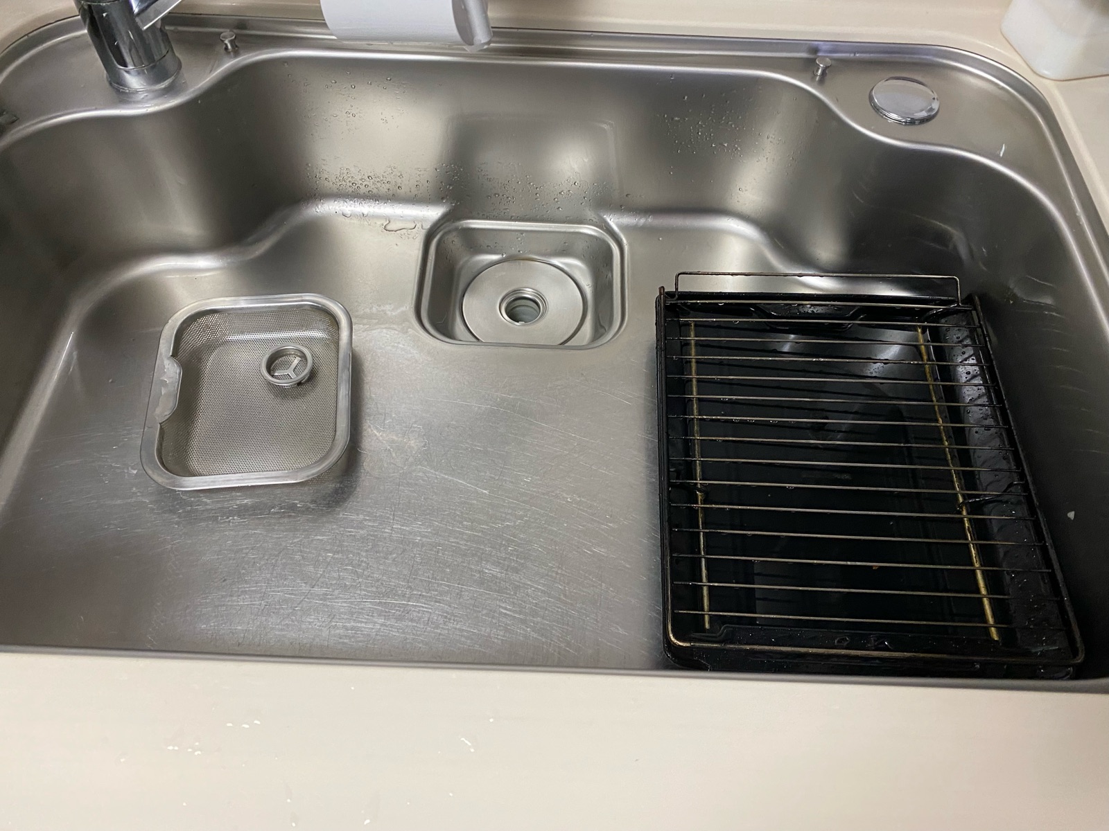 キッチンシンクと排水口を掃除するついでに、ギトギトしていた魚焼きグリルも追加。