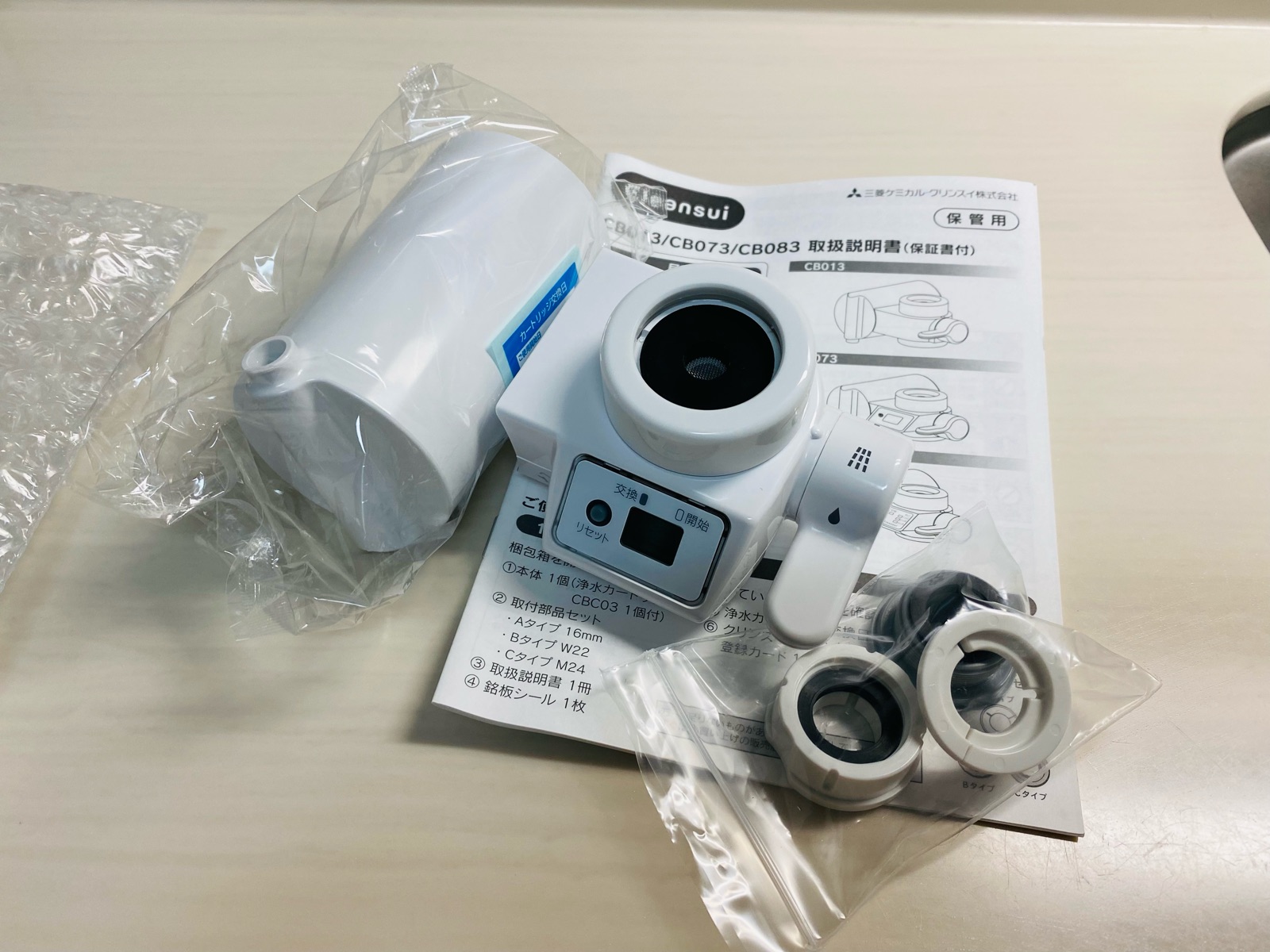 掃除が終わった所で、浄水器の液晶表示が交換時期なので、交換する事に・・