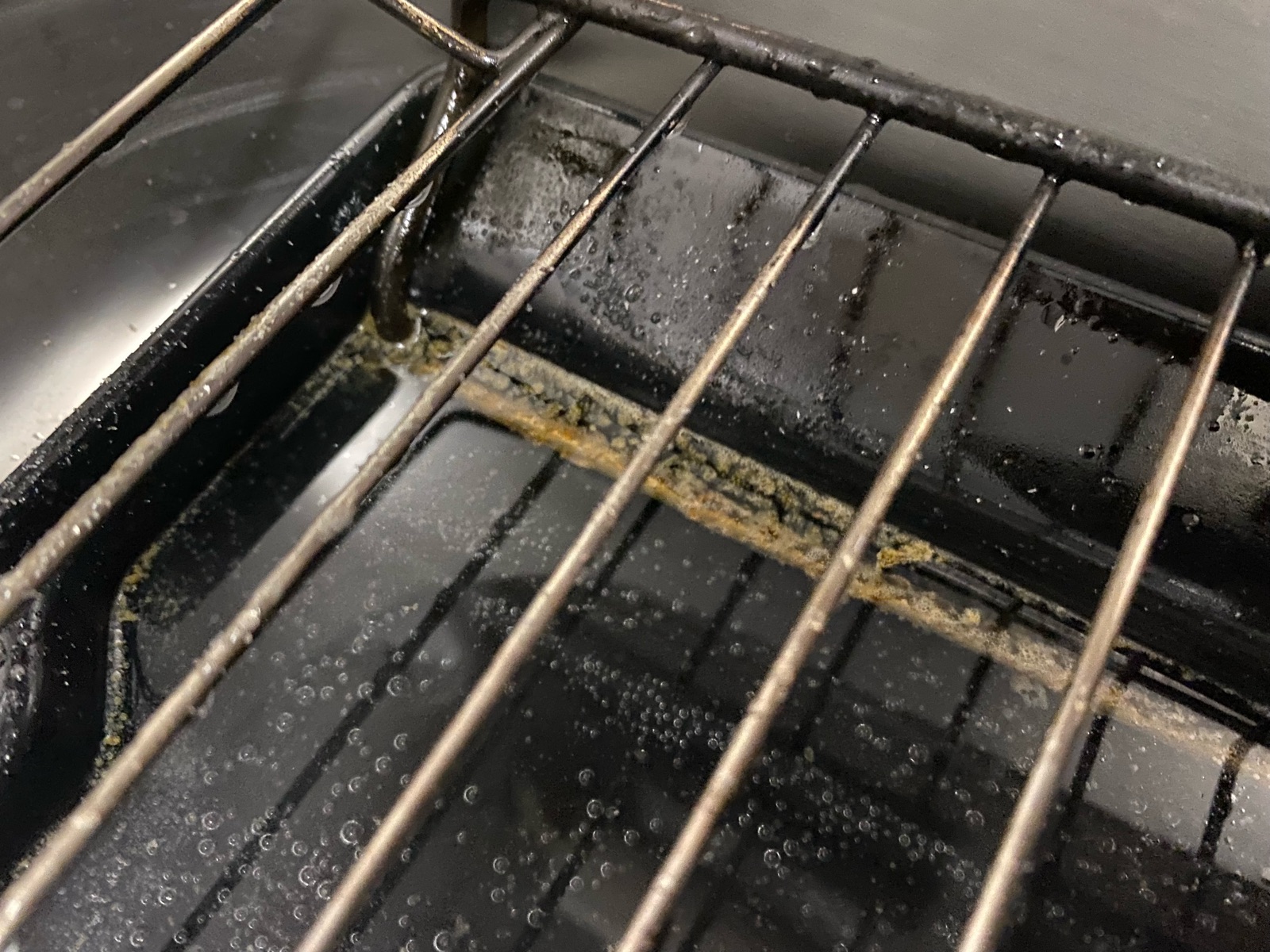 シュワシュワがおさまった頃には、魚焼きグリルには油が浮いてました。
