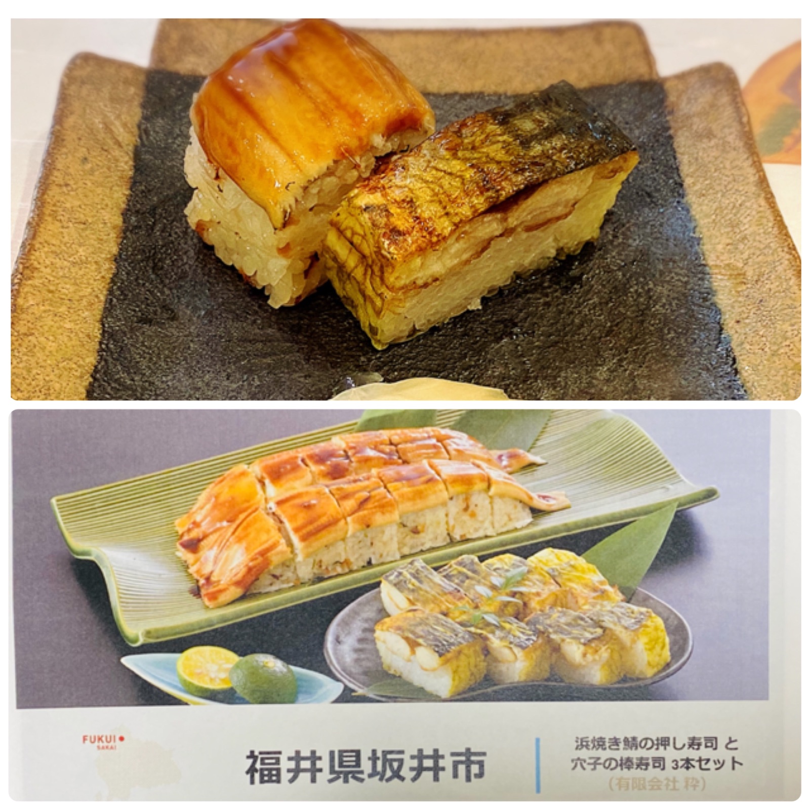 福井県坂井市 浜焼き鯖の押し寿司と穴子の棒寿司セット