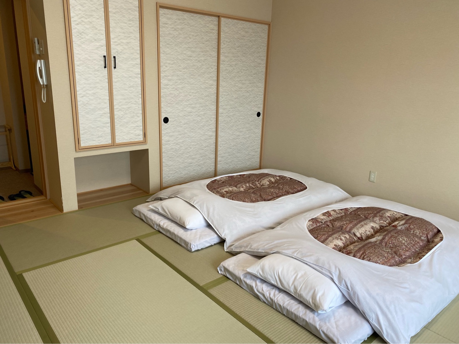 コロナ対策って事で、人の出入りを最低限にする為に先にお布団が敷いてありました。