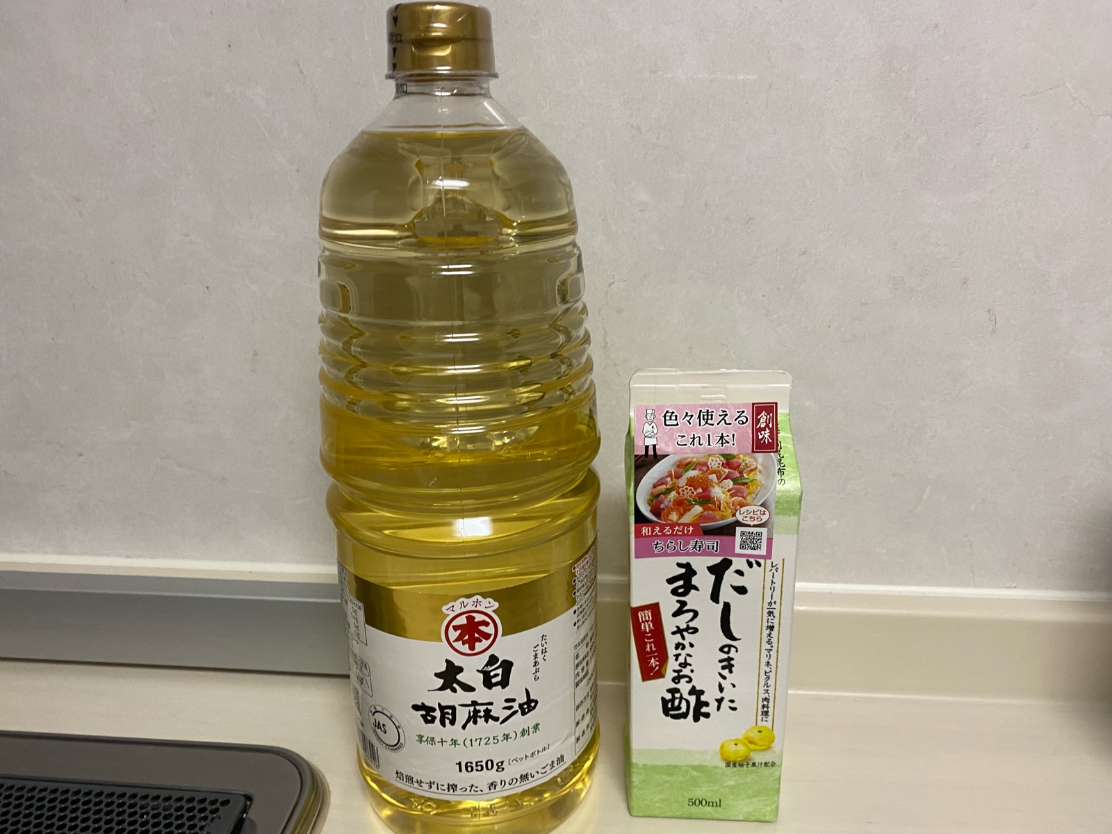 | 主人の病気がわかってから、我が家の定番油です。 お菓子作りにも使えるくらいに匂いもなく、酸化しにくい。 「だしまろ酢」は、何故だか最近近所のスーパーから次々と消えて購入出来なかったので購入♪ 酢の物だけじゃなく野菜を漬けてピクルス。酢飯にしても美味しい。出汁がきいたお酢です。 |
