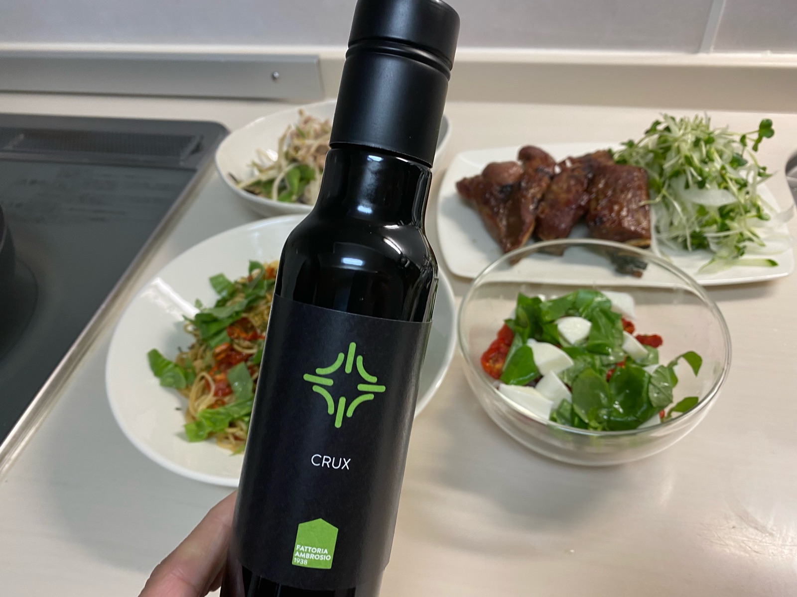 このオリーブオイル「クルックス」の、酸味や辛みが甘さを更に引き立ててくれたので、いつも以上にめちゃくちゃ美味しい!!
