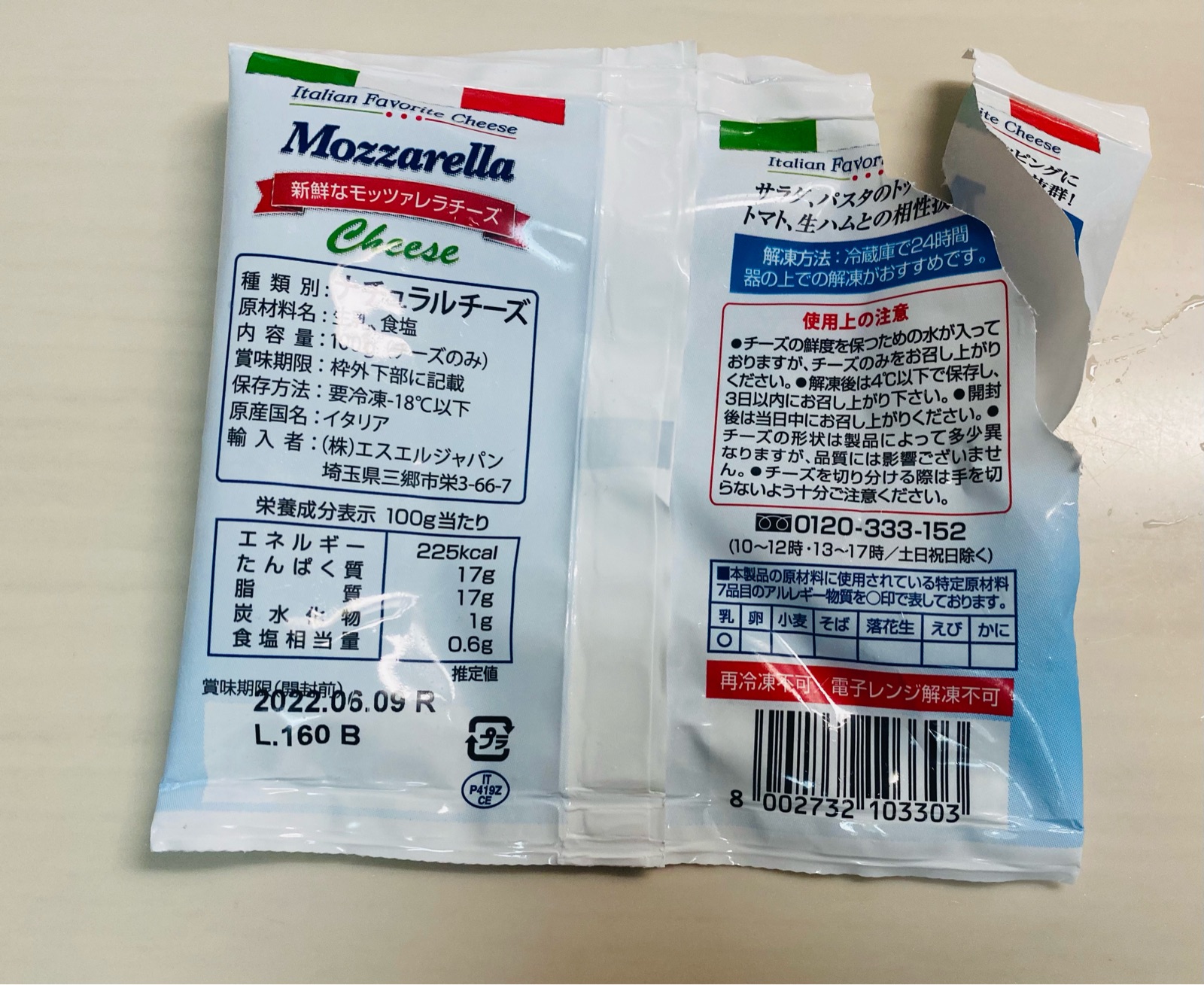 これが美味しくて・・バクバクと食べられるので「ハナマサ」で冷凍モッツァレラチーズを見かけたら2~3個まとめて買いだめしています。