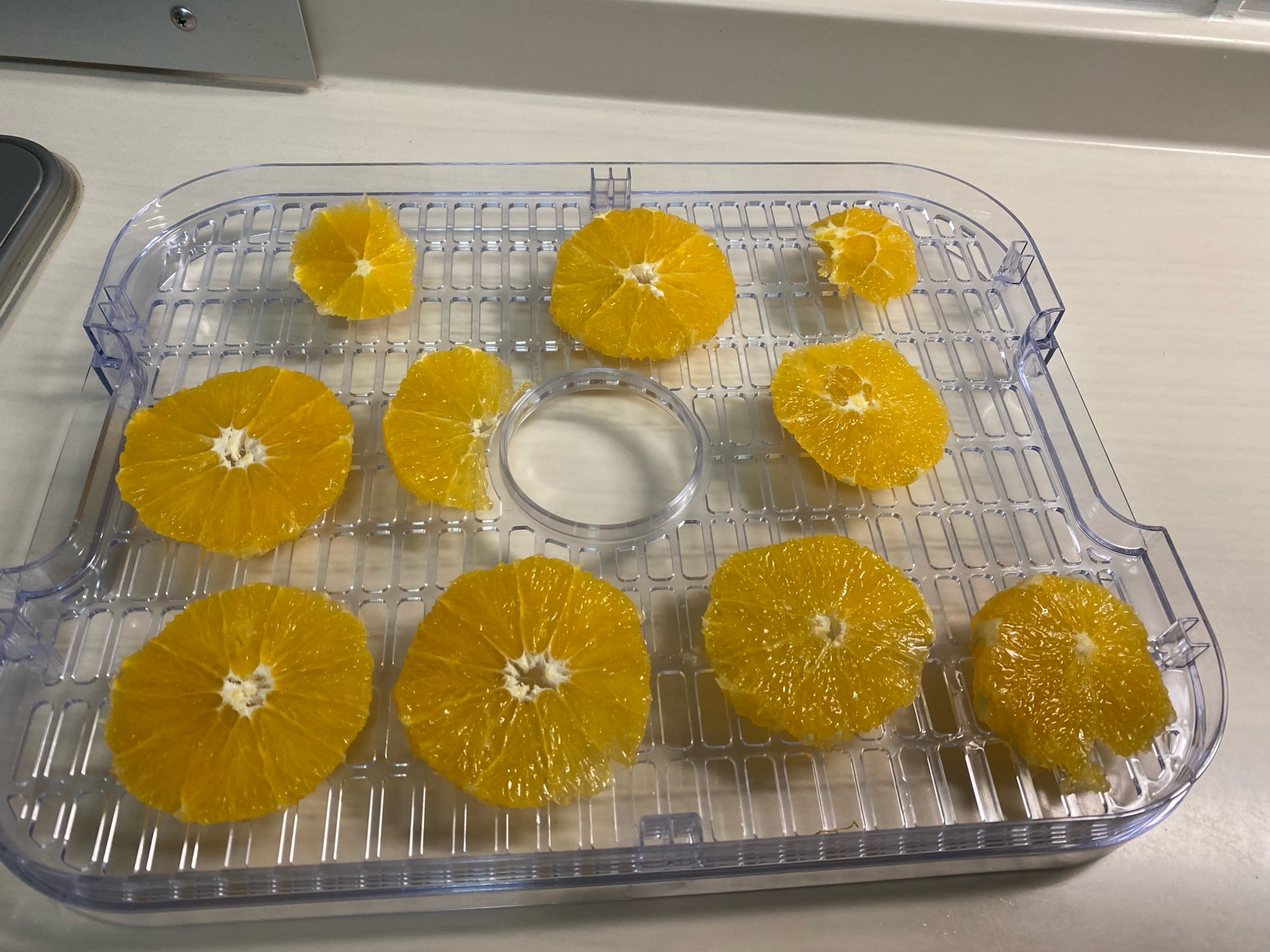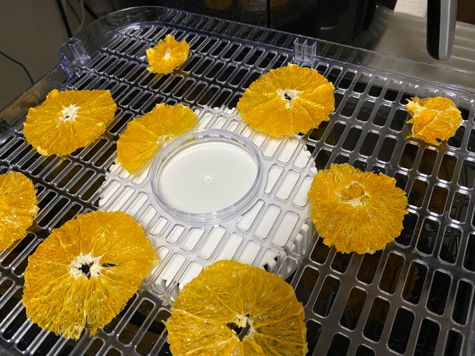 オレンジなどの柑橘系と一緒にフードドライヤーにセットすると