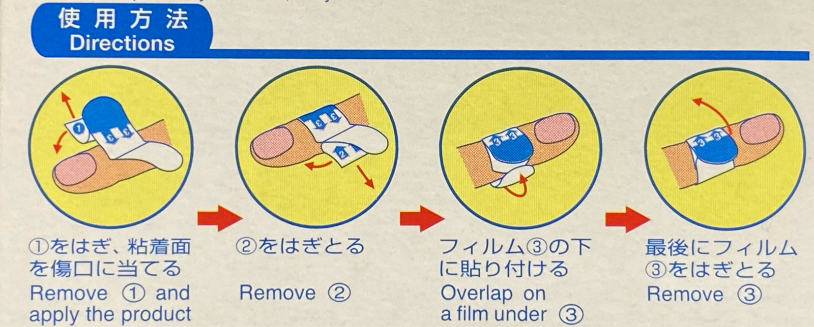 フィルムの包装にも使い方が記載されていて