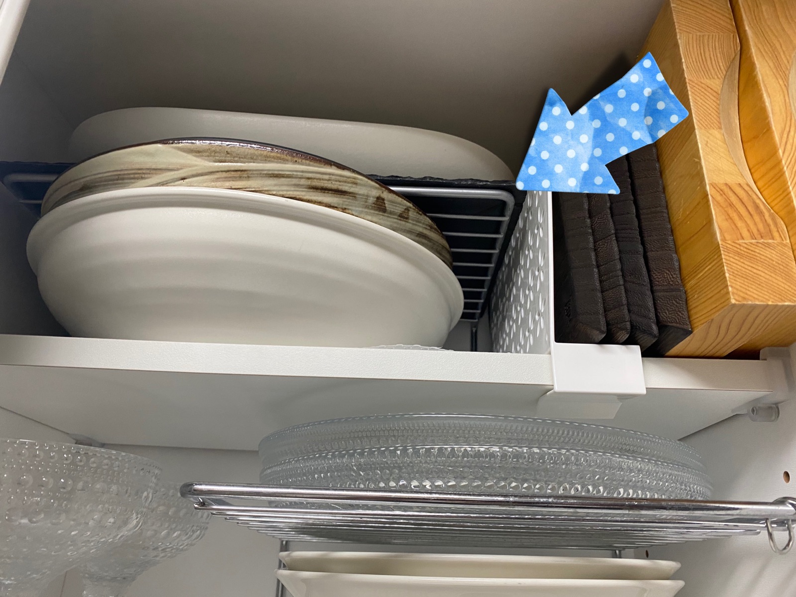 大きなお皿も、キッチンボード上部には収納出来ないサイズなので