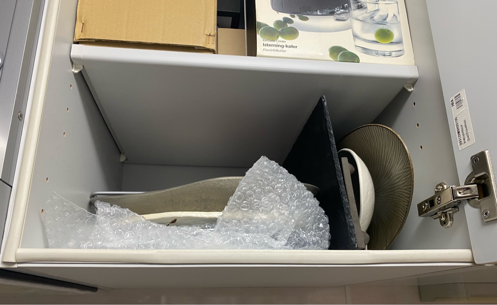 吊戸棚に残っているお皿を取り出し