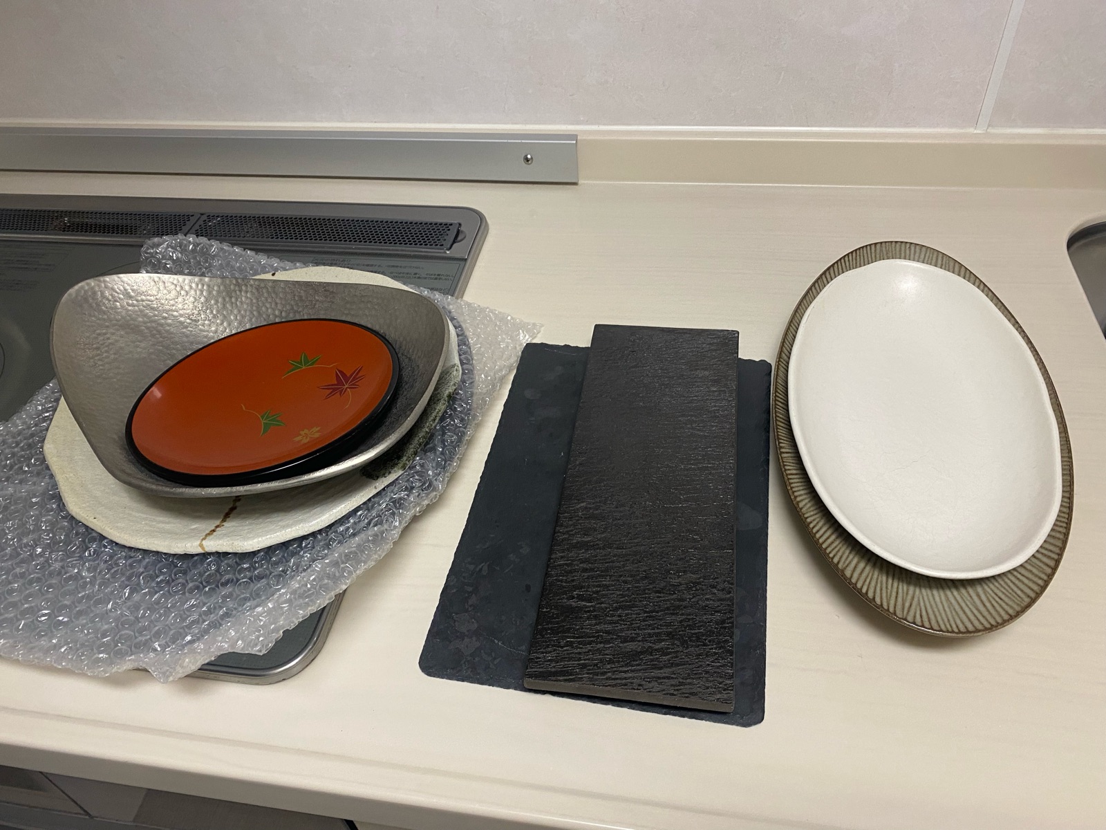 大皿2枚・オーバル皿2枚・お菓子の皿1枚の5枚を収納。