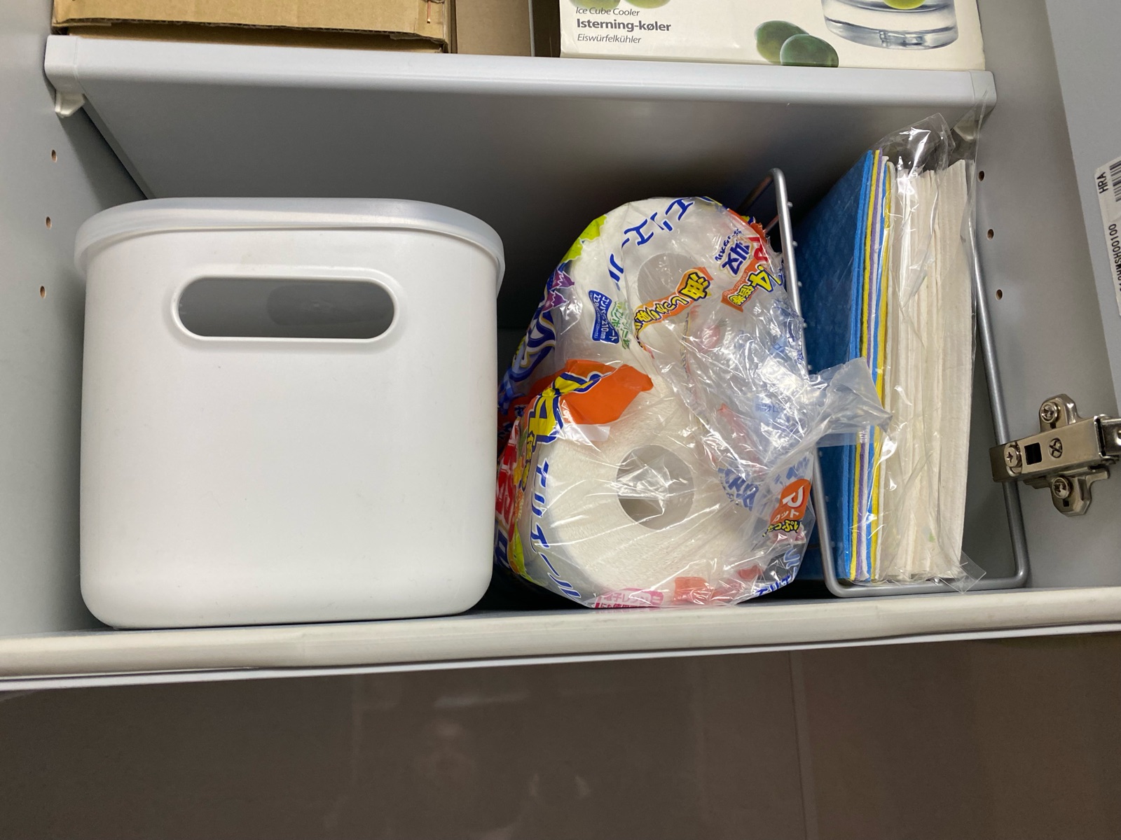 スポンジワイプとキッチンペーパーを吊戸棚へ