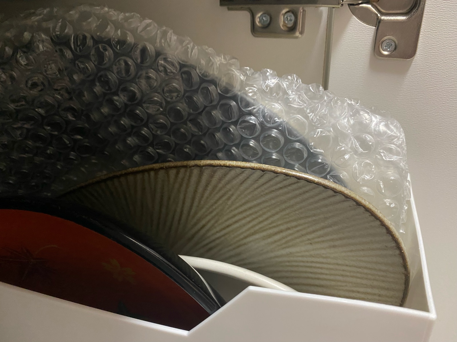 隙間にストックのホイルとお菓子のお皿を入れて8枚のお皿全て収納出来ました♪