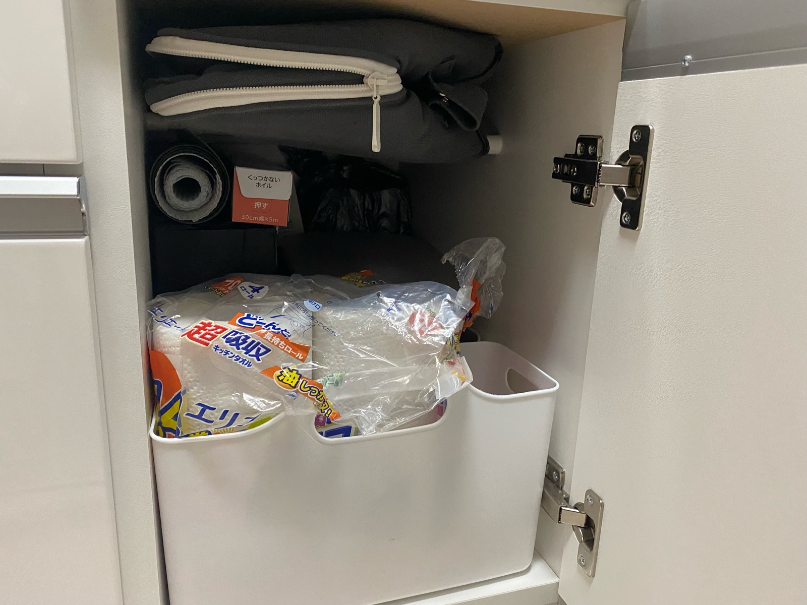 背の低い まめ嫁は、吊戸棚よりも下にある扉の方が出し入れしやすいのでキッチンペーパーや