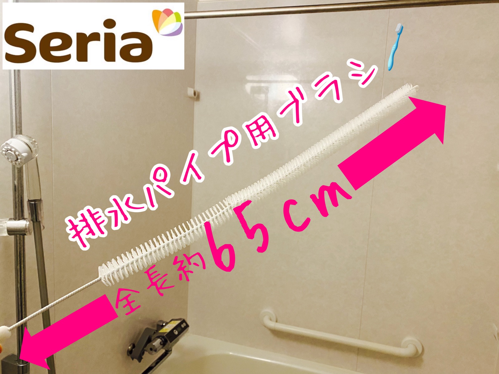 第4位 「セリア」65cmの排水パイプ用ブラシで浴室排水口の奥を掃除!!