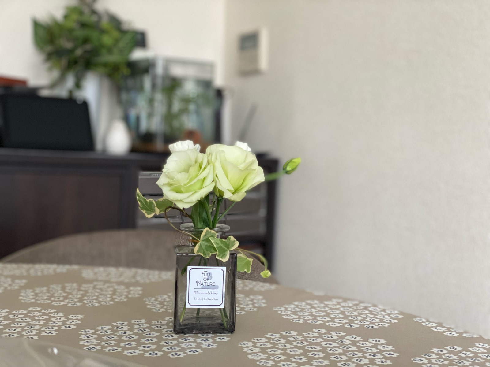 テーブルに花を飾っていると、気持ちが和みます。