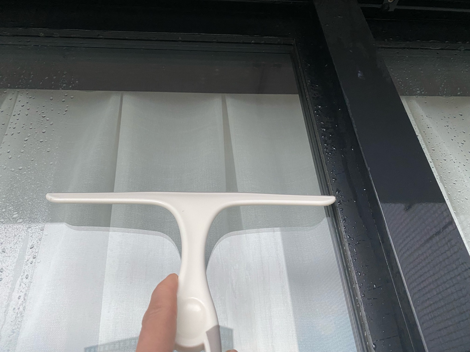 スクイージーで水滴を取り