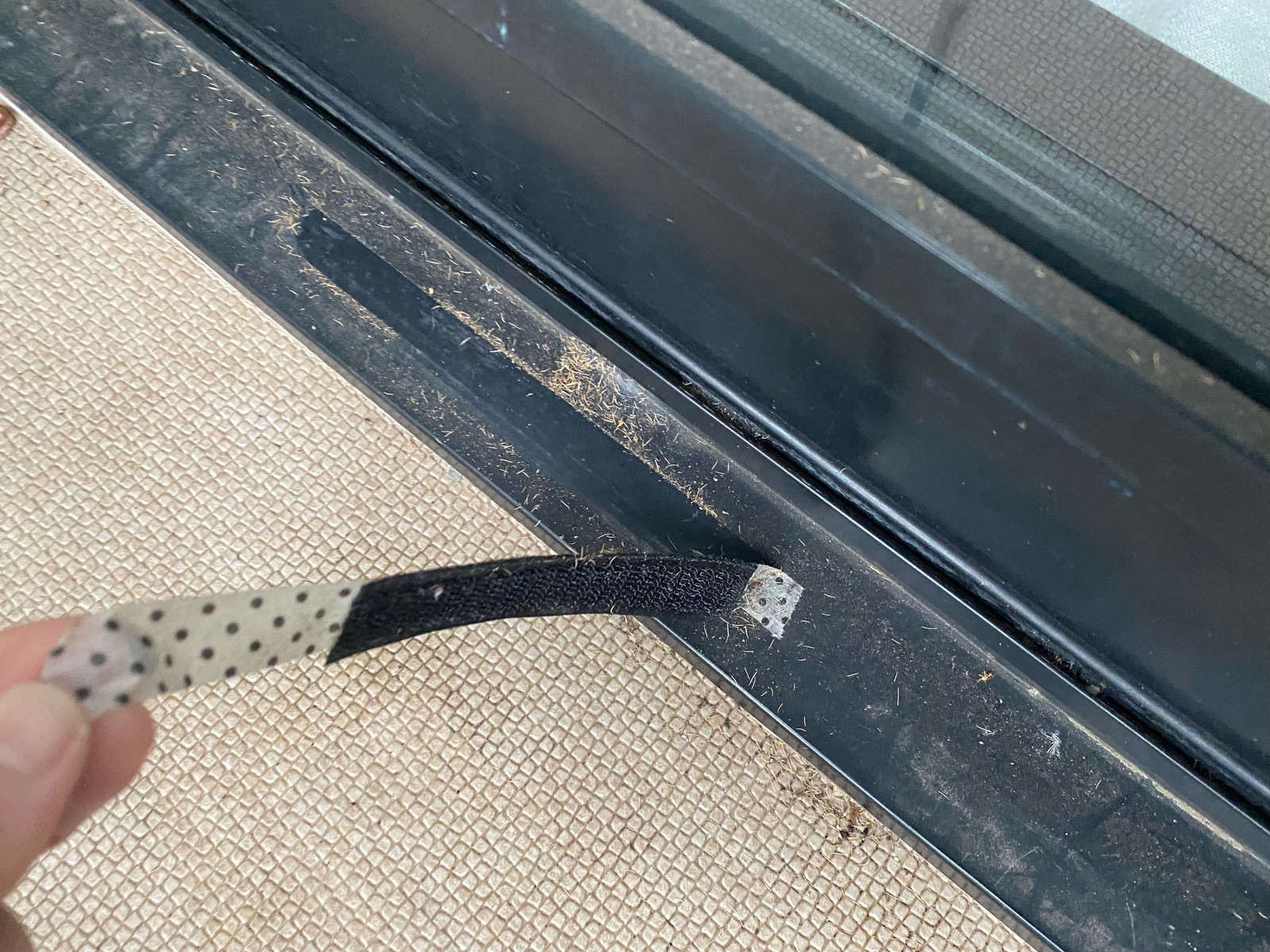 網戸を貼っていたマジックテープを剥がしてゴミを掃除。