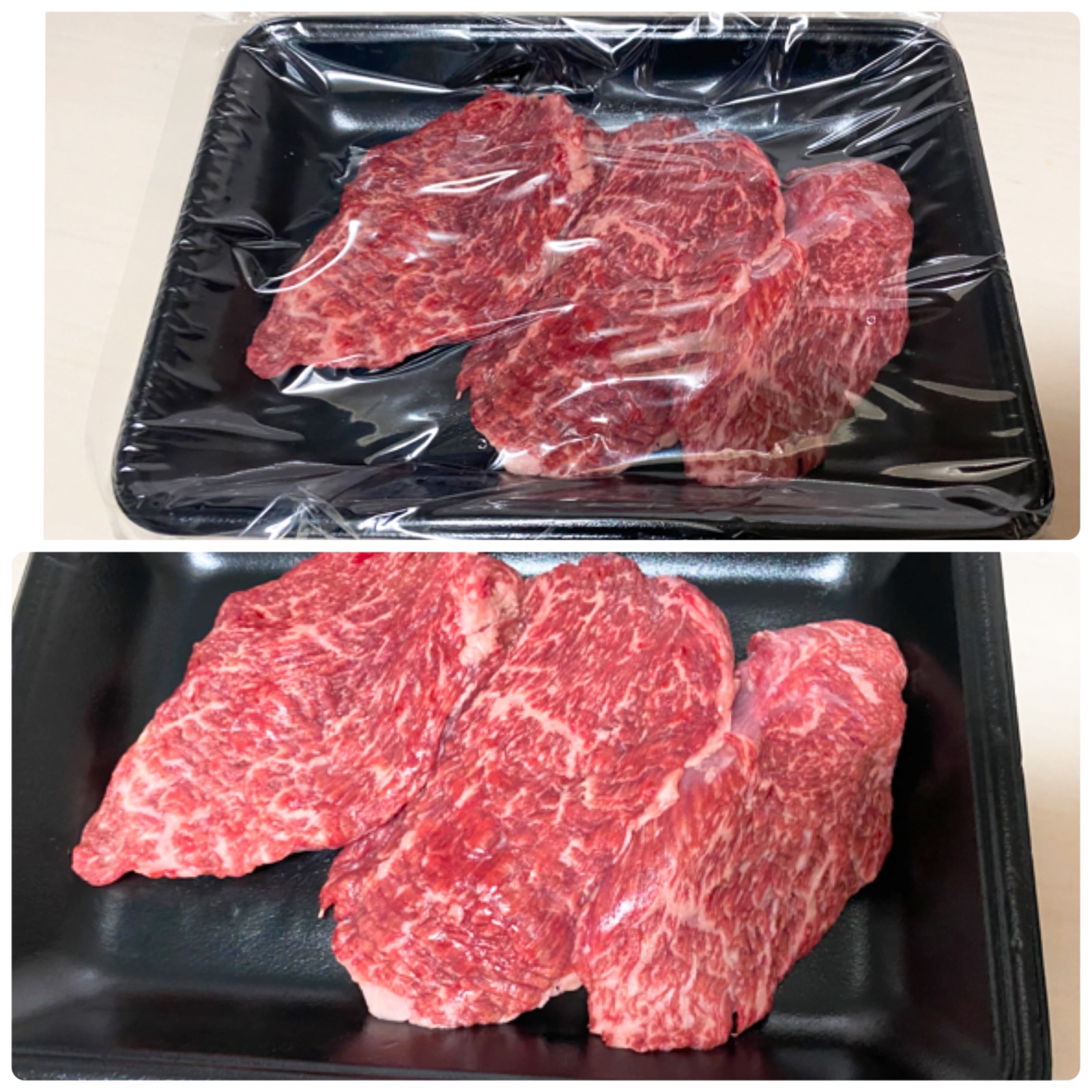 霜降りに見えますが、赤身なので脂がしつこく無くて夫婦でペロリと1回で食べちゃいました。